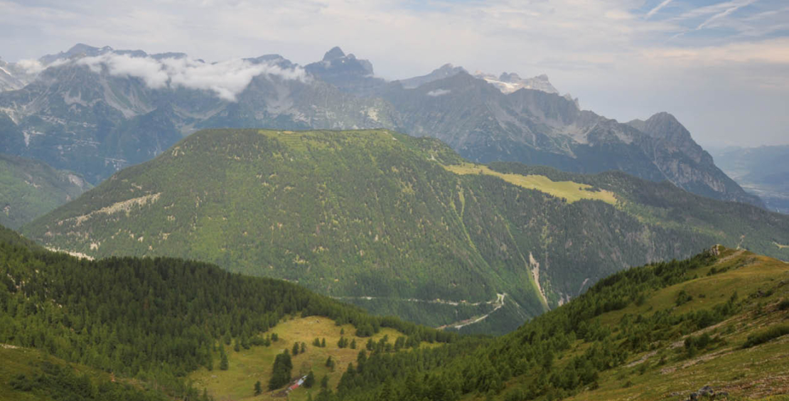 Der Weg durch den immer steiler gegen Martigny abfallenden Wald nach der Alp wird wesentlich steiler und eröffnet eine atemberaubende Aussicht das Rhonetal aufwärts und hinaus in Richtung Genfersee. Dort, wo wir den Wald kurz vor der Alpage de Bovine verlassen, wenden wir uns, der Einkehr vorerst einmal entsagend, gegen Süden und folgen den stellenweise spärlichen Wegspuren hangaufwärts entlang des Gratrückens, der nach La Giète abfällt.