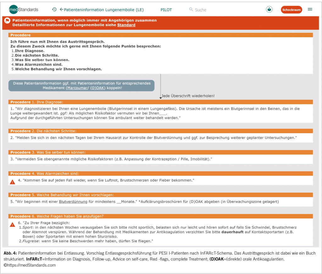 Für die Therapieentscheidung sollte immer auch die Gebrechlichkeit (z.B. Clinical Frailty Scale – CFS) berücksichtigt werden. Für eine ambulante Behandlung ist neben der Risikoeinschätzung ebenso die Patienteninformation vor Austritt bedeutend (Abb. 4).