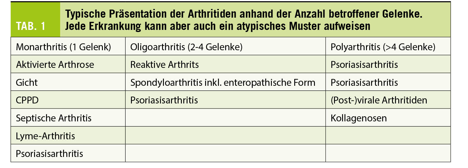 Arthralgien sind in der täglichen Praxis sehr häufig, und die Differentialdiagnose ist breit. Diese wird überschaubarer, wenn ein geschwollenes Gelenk vorliegt, und es eröffnet sich dann oft auch eine entscheidende weitere diagnostische