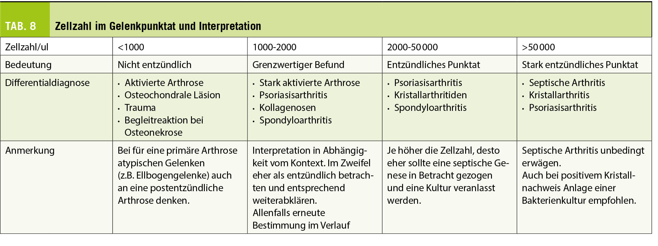 Möglichkeit: die Gelenkpunktion. Der folgende Artikel soll einen möglichen diagnostischen Ablauf veranschaulichen und als Hilfestellung für die tägliche Praxis dienen.