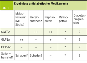 SGLT2-Inhibitoren senken HbA1c, das Körper­gewicht (80–100 g Glucose sind ca. 300 bis 400 Kal/Tag) sowie den Blutdruck. Es entstehen keine Hypoglykämien und alle Kombinationen sind möglich.