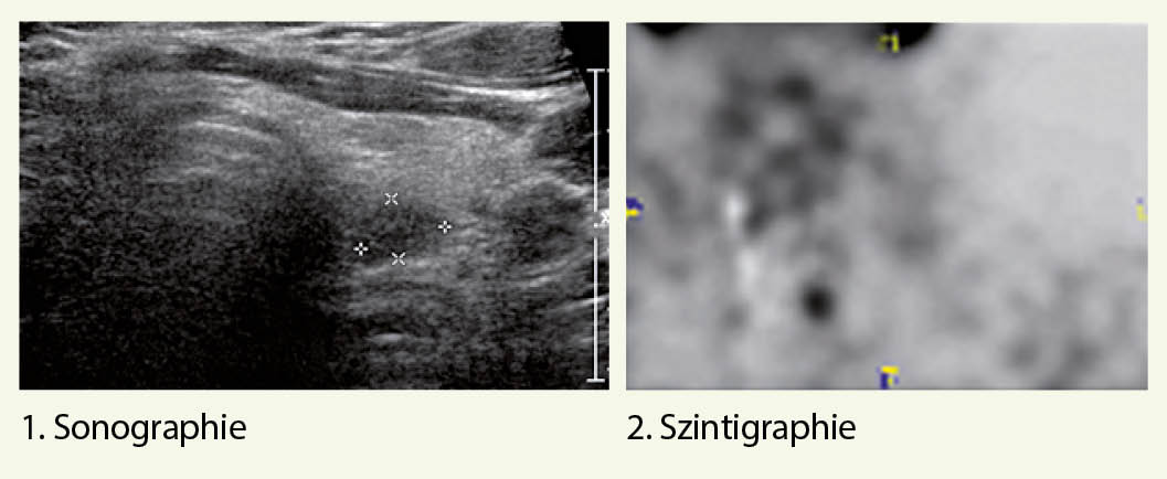 Eine erfolgreiche Lokalisationsdiagnostik ermöglicht einen fokussierten und dadurch auch minimal-invasiven operativen Zugangsweg (16) und schliesst als Optionen 1. die zervikale Sonographie und 2. die Sestamibi-Szintigraphie bzw. Sestamibi-SPECT/ CT-Untersuchung mit ein.