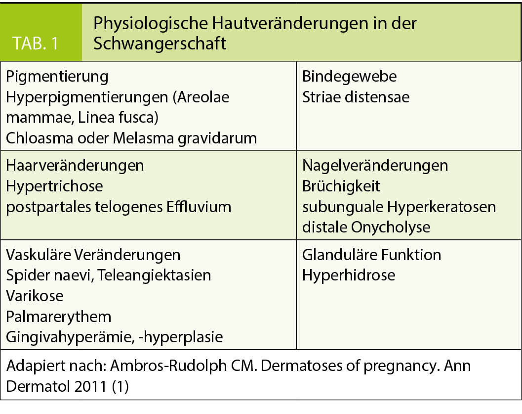 - In der Schwangerschaft finden wir physiologische Hautveränderungen, Schwangerschaftsdermatosen sowie positiv oder negativ beeinflusste Hauterkrankungen
