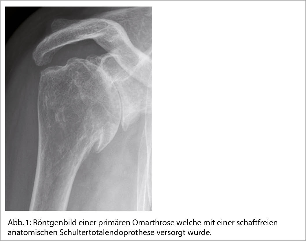 Die Schultergelenksarthrose kann in eine primäre Arthrose und eine sekundäre Arthrose eingeteilt werden. Während bei der primären Arthrose mit Ausnahme des eventuell höheren Alters und des damit einhergehenden Verschleisses keine eindeutige Ursache genannt werden kann, ist die sekundäre Arthrose auf einen klaren Grund zurückzuführen der eine frühzeitige Degeneration des Schultergelenkes auslöst. Stellt sich in der Anamnese und in der klinischen Untersuchung der Verdacht einer Schultergelenksarthrose, benötigt man zur weiteren Diagnostik eine Bildgebung in Form von Röntgenaufnahmen. Initial steht eine schmerzlindernde Kortisoninfiltration und anti-entzündliche medikamentöse Therapie im Vordergrund, welche durch physiotherapeutische Massnahmen begleitet werden sollte. Bei therapierefraktären Beschwerden und grossem Leidensdruck besteht die Indikation zur operativen Versorgung mittels einer Schulterendoprothese. Hierdurch kann sowohl im kurz- sowie langfristigen Verlauf eine deutliche Schmerzreduktion und Funktionsverbesserung erzielt werden und somit die Lebensqualität der Patienten verbessert werden. Zeigt sich eine fortgeschrittene Dezentrierung des Oberarmkopfes oder ein instabiles Drehzentrum ist die Versorgung mittels einer inversen Schulterendoprothese indiziert. Moderne Planungsverfahren erlauben die individuelle Anpassung der Schulterendoprothese an die individuelle Anatomie des Schulterblattes und Oberarmkopfes sowie die Körperhaltung der Patientinnen und Patienten.