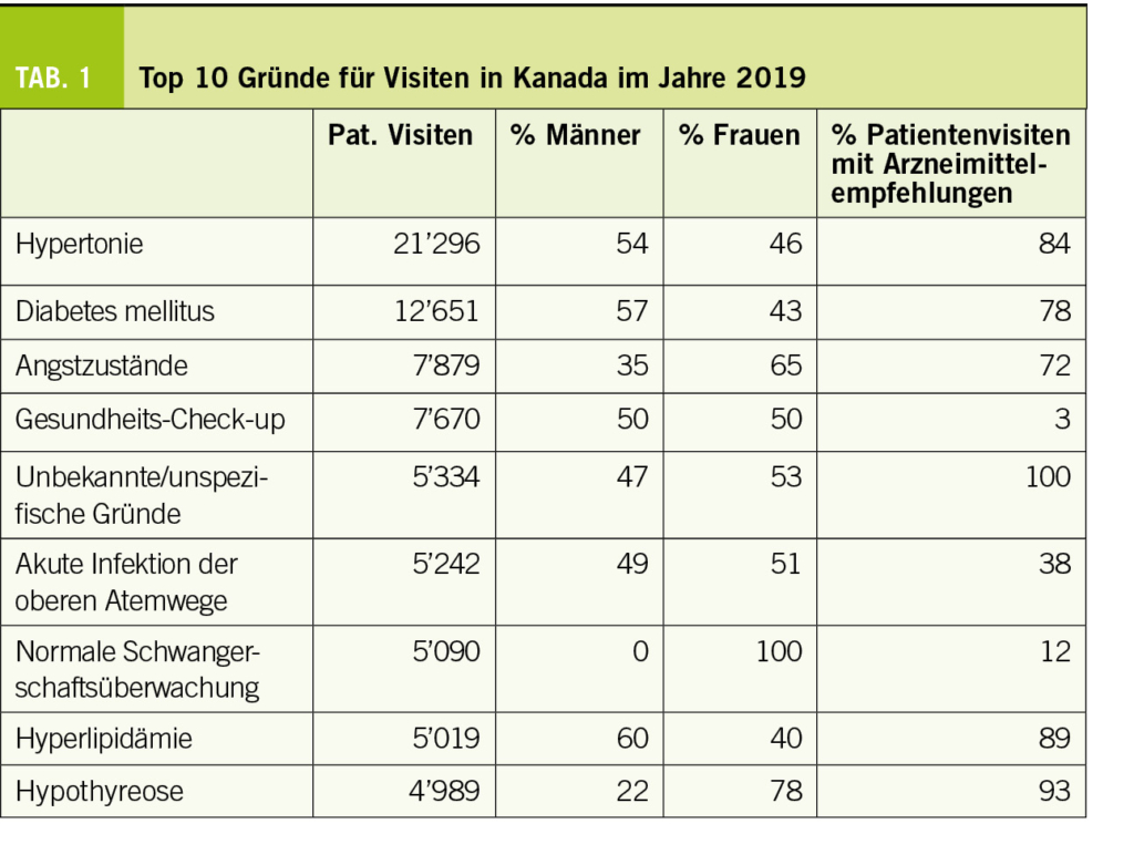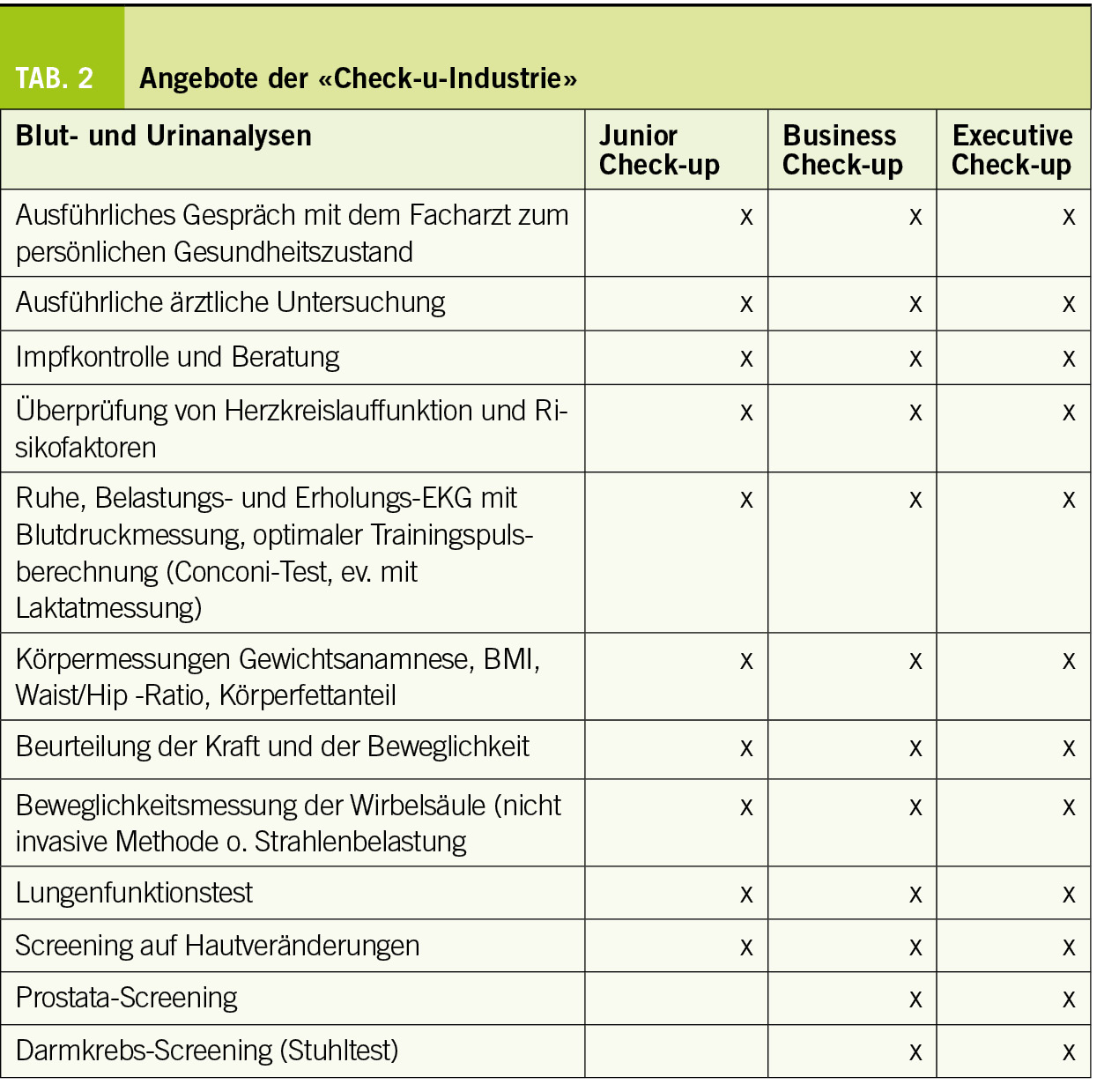 Check-ups werden häufig verlangt. Die Top 10 Gründe für Visiten in Kanada im Jahre 2019 sind in Tabelle 1 dargestellt, die Angebote der «Check-u-Industrie» in Tabelle 2.