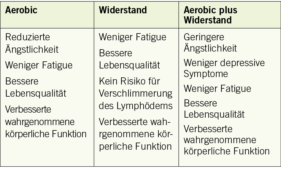 Der Effekt von Ausdauer- und Krafttraining auf Fatigue ist am besten bei moderater bis energischer Intensität (aerobic) nachgewiesen.