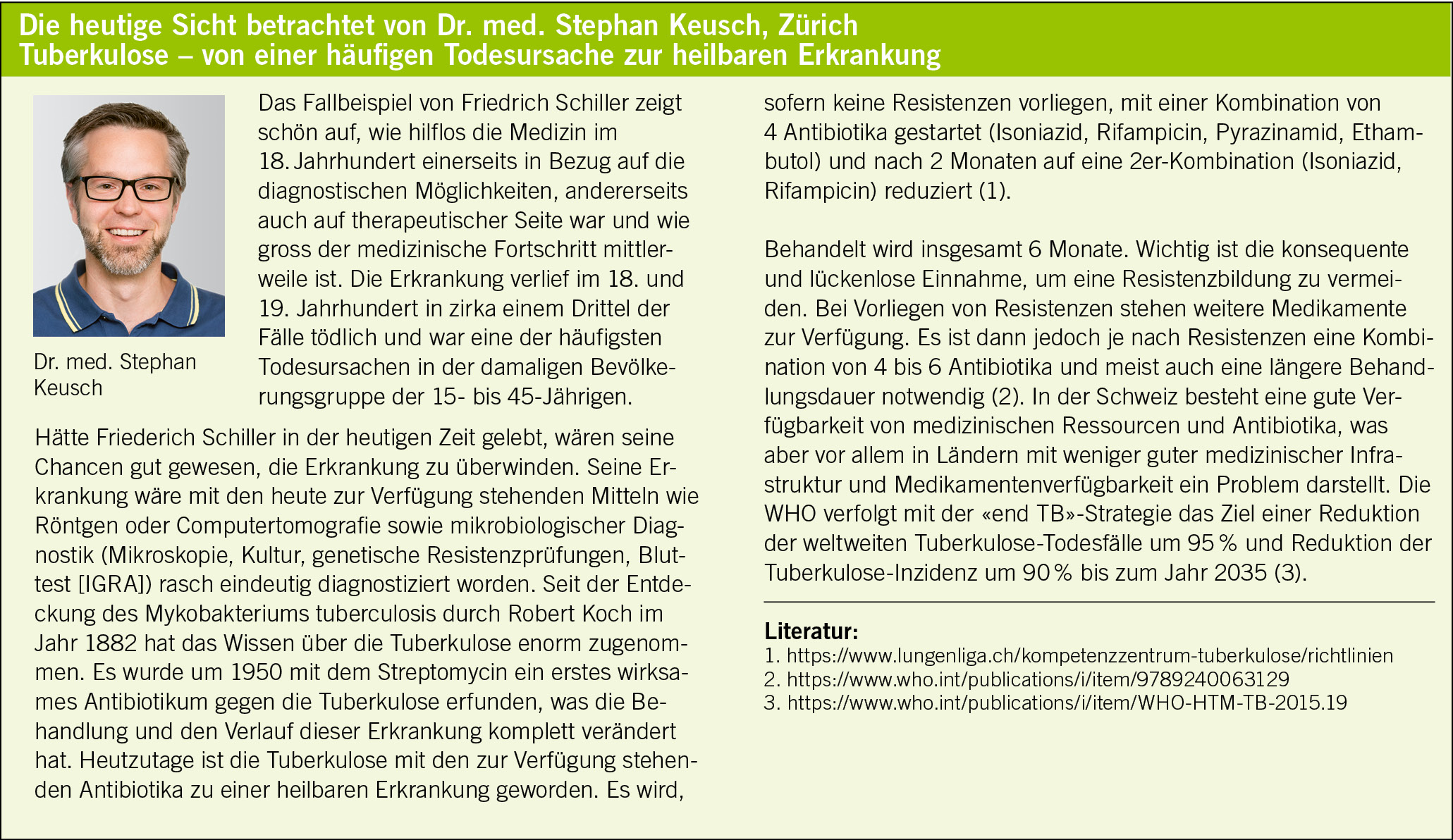 Seit zwei Jahrhunderten hat jede Ärztegeneration die Krankengeschichte und Obduktion Friedrich von Schillers nach ihrem Wissensstand betrachtet. Über seine Krankheiten und Todesursache existiert eine unübersehbare Fülle an Literatur.