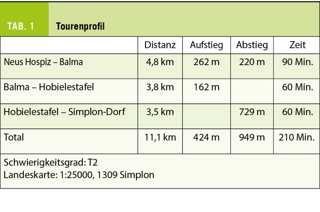 Auf der Südseite des Simplonpasses verbirgt sich ein wunderschöner und abwechslungsreicher Höhenweg, den man bis Gondo gehen kann. Uns steht heute aber nur ein gewitterfreies Zeitfenster von gut vier Stunden zur Verfügung, weshalb wir uns auf den Abschnitt zwischen dem zu Napoleons Zeiten erbauten neuen Hospiz und dem Dorf Simplon beschränken.