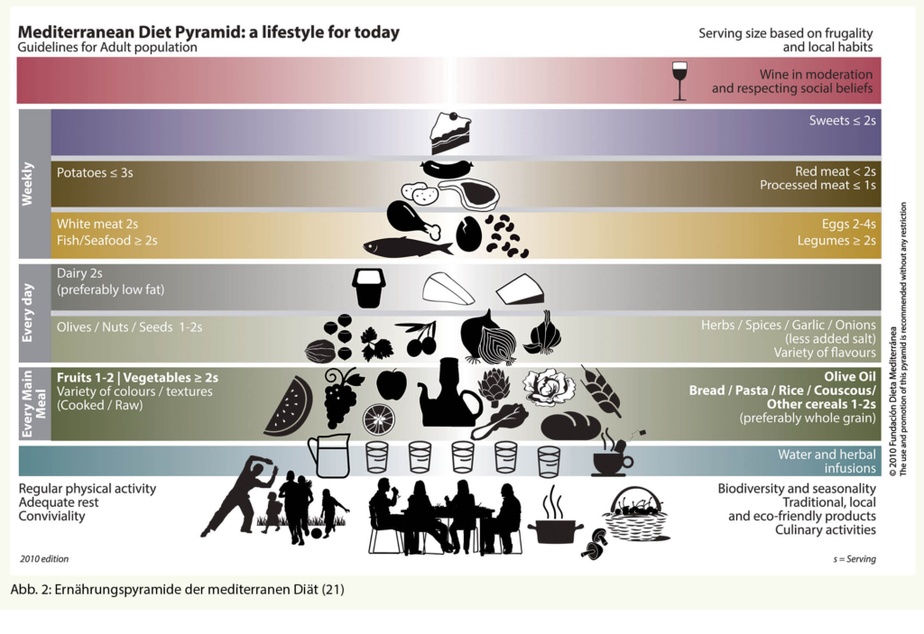 Wissenschaftliche Erkenntnisse zeigen, dass sie in Bezug auf diverse ernährungsbedingte Erkrankungen präventiv wirkt, diesbezüglich ist den meisten die Lyon Diet Heart Studie bestens bekannt (15). Weitere Studien konnten die positiven gesundheitlichen Auswirkungen bestätigen bzw. weitere gesundheitliche Vorteile aufzeigen, wie die Senkung der Gesamtmortalität, so z.B. die PREDIMED Studie (16) und die EPIC Studie (17).
