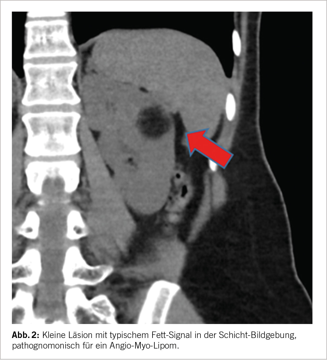 Die bildgebende Grundlage für die Beurteilung einer SRM ist entweder eine qualitativ hochwertige CT oder MRI-Untersuchung nativ sowie mit Kontrastmittel. Beide Verfahren haben gewisse Vor- und Nachteile, eine eindeutige Überlegenheit der einen gegenüber der anderen gibt es nicht (9). Die wichtigen Aspekte hier sind i) der allfällige Nachweis von Fettgewebe, welcher richtungsweisend für ein Angio-Myolipom und somit eine gutartige Läsion wäre, ii) das Kontrastmittelverhalten, wobei eine deutliche Anreicherung eine Malignität wahrscheinlicher macht, iii) die Charakterisierung allfälliger zystischer Läsionen basierend auf der Bosniak-Klassifikation (10) sowie iv) die Beschreibung der Tumor-Komplexität, z.B. unter Verwendung der RENAL Scores. Aus letzterer Information lässt sich insbesondere auch eine Einschätzung der Komplexität einer allfälligen chirurgischen Intervention abschätzen. Tumoren <3cm zeigen verglichen mit SRM von 3-4cm ein noch geringeres Risiko für Malignität oder aggressives biologisches Verhalten (6, 11). Liegen bereits mehrere Bilder vor und erlauben somit eine Aussage über die Dynamik, so ist ein rasches Wachstum (>5mm pro Jahr) ebenfalls ein Zeichen für Malignität und aggressives Verhalten. Als letzter Aspekt und somit v) sollte die Klinik berücksichtigt werden, bei Fieber und Infekt-Zeichen kommt differentialdiagnostisch eine entzündliche Genese (Abszess/Pyelonephritis) in Betracht. Ansonsten gibt es aber keine weiteren bildmorphologischen Aspekte, welche eine verlässliche Aussage in Hinblick auf die reale biologische Aggressivität der SRM ableiten liessen.