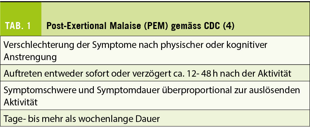 - Post-exertional Malaise (PEM) (Tab. 1)
