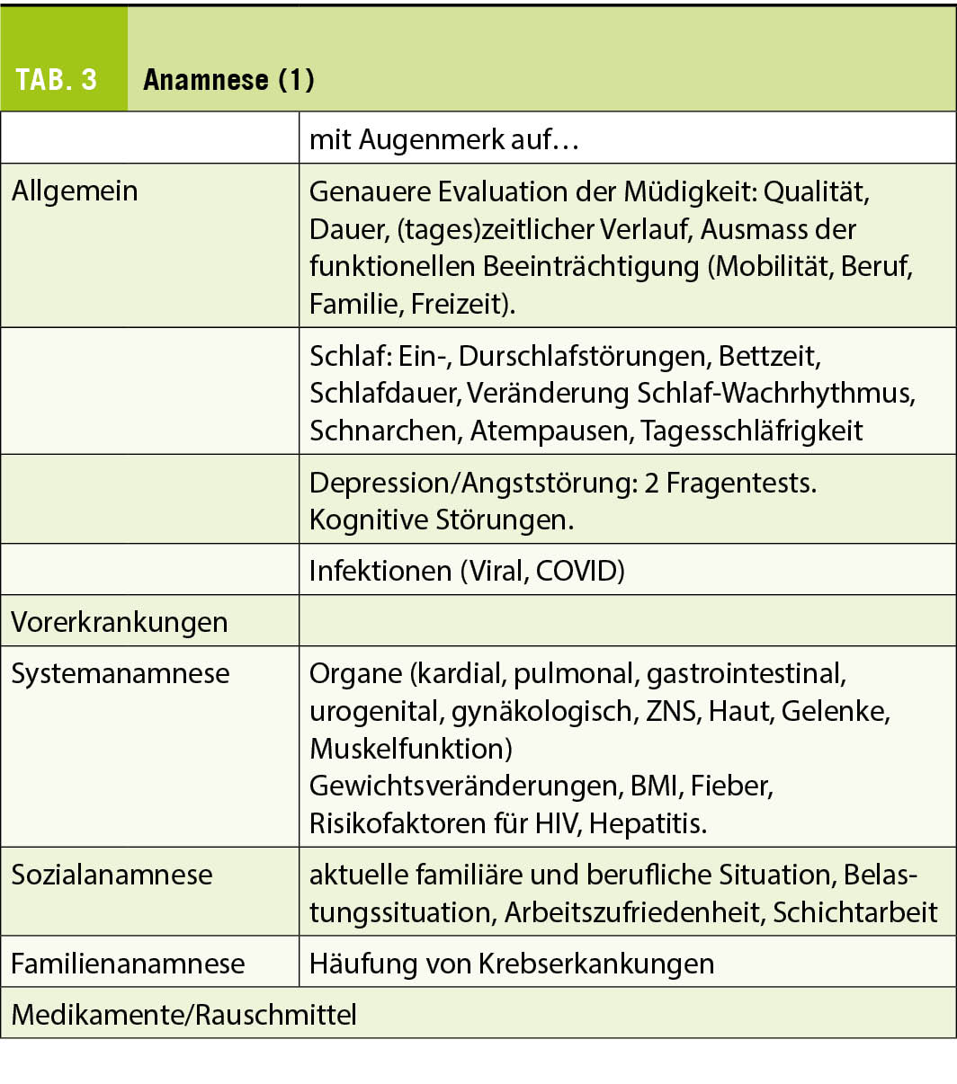 Eine reproduzierbare, gleiche Herangehensweise bei jeder Evaluation von Müdigkeit ist essentiell: der Patient sollte immer mit Anamnese, körperlicher und laboranalytischer Untersuchung abgeklärt werden.