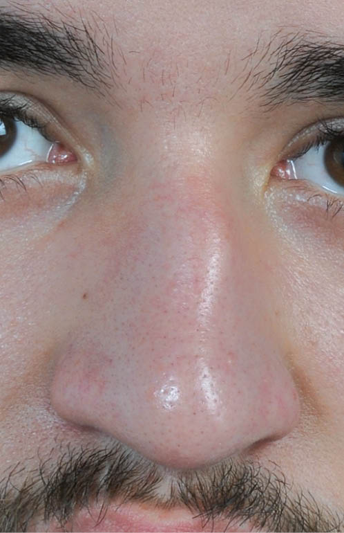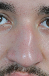 Bei diesem Patienten liegt eine unkomplizierte, geschlossene und dislozierte Nasenfraktur mit einem Achsenschiefstand vor. Dazu passen die Anamnese mit adäquatem Trauma sowie, der Befund der deviierten Nase mit leichter Epistaxis und Nasenatmungsbehinderung. Hinweise für eine Mittelgesichtsfraktur liegen nicht vor, da Zeichen wie ein Brillenhämatom, Augenmotilitätsstörungen mit Doppelbildern, Stufenbildung des Orbitarandes, Sensibilitätsstörungen im Bereich des N. infraorbitalis, Okklusionsstörungen oder eine tropfende wässrige Rhinorrhoe fehlen. So darf bereits im klinischen Untersuch eindeutig die Diagnose einer dislozierten Nasenfraktur gestellt werden.