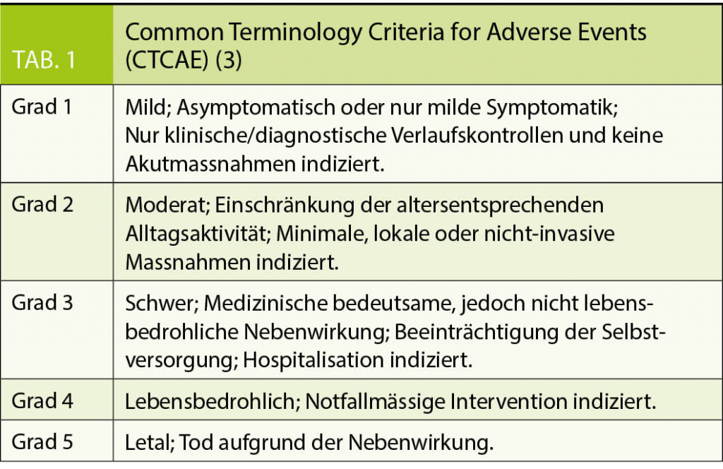 3. CTCAE Version 5.0. Published November 27, 2017, National Cancer Institute. https://ctep.cancer.gov/protocoldevelopment electronic_applications/docs/CTCAE_v5_Quick_Reference_8.5×11.pdf (Zugriff am 06.02.2019).