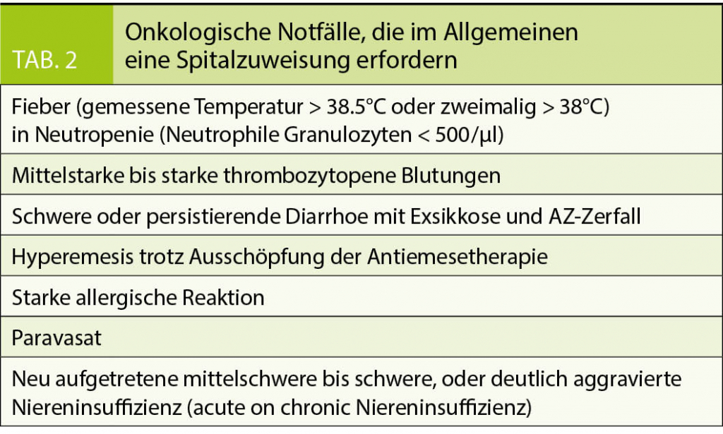 • Febrile Neutropenie unter Chemotherapie oder persistierende Diarrhoe unter Immuntherapie sind Beispiele für schwere onkologische Notfälle und bedürfen der Spitalzuweisung