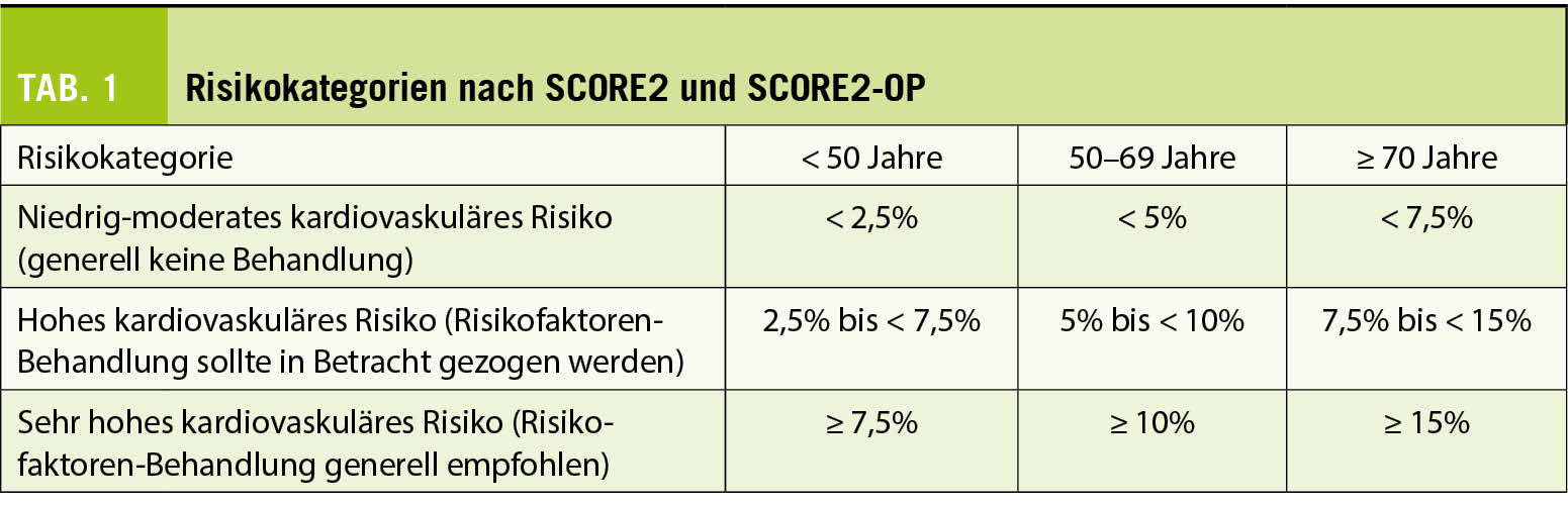 Während in Stufe 1 Präventions-ziele für alle, d.h. für Gesunde, wie für Patienten mit Diabetes oder kardiovaskulären Erkrankungen empfohlen werden, wird in Stufe 2 entschieden, ob aufgrund des kardiovaskulären 10-Jahresrisikos weitere Behandlungsziele angestrebt werden sollen. Dazu wurde der bisherige ESC-Score für die Primärprävention durch einen neuen Score ersetzt, den SCORE2. Der Score2 hat Gültigkeit bis zu einem Alter von 70 Jahren. Für über 70-Jährige wurde neu der SCORE2-OP etabliert.