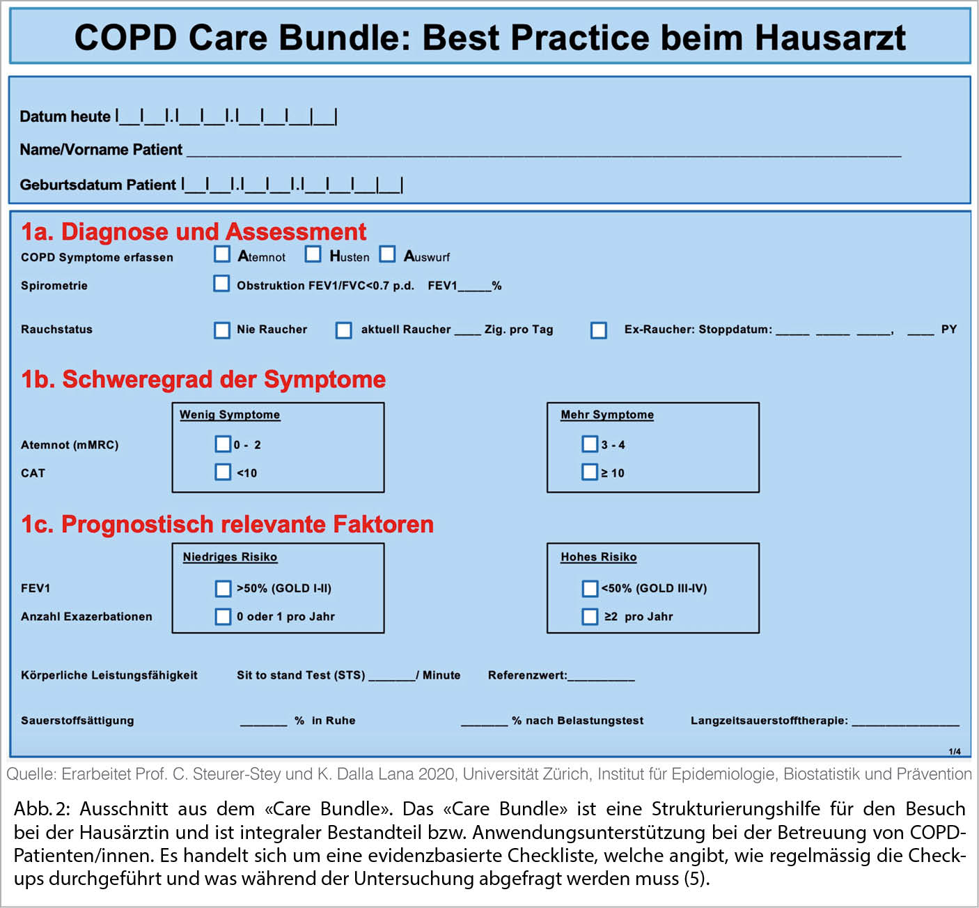 Das «Care Bundle» wurde vom Institut für Epidemiologie, Biostatistik und Prävention der Universität Zürich entwickelt. Die Daten zeigen, dass die Betreuung der Patienten/innen mit Hilfe des «Care Bundles» signifikant besser durchgeführt wurde (8).