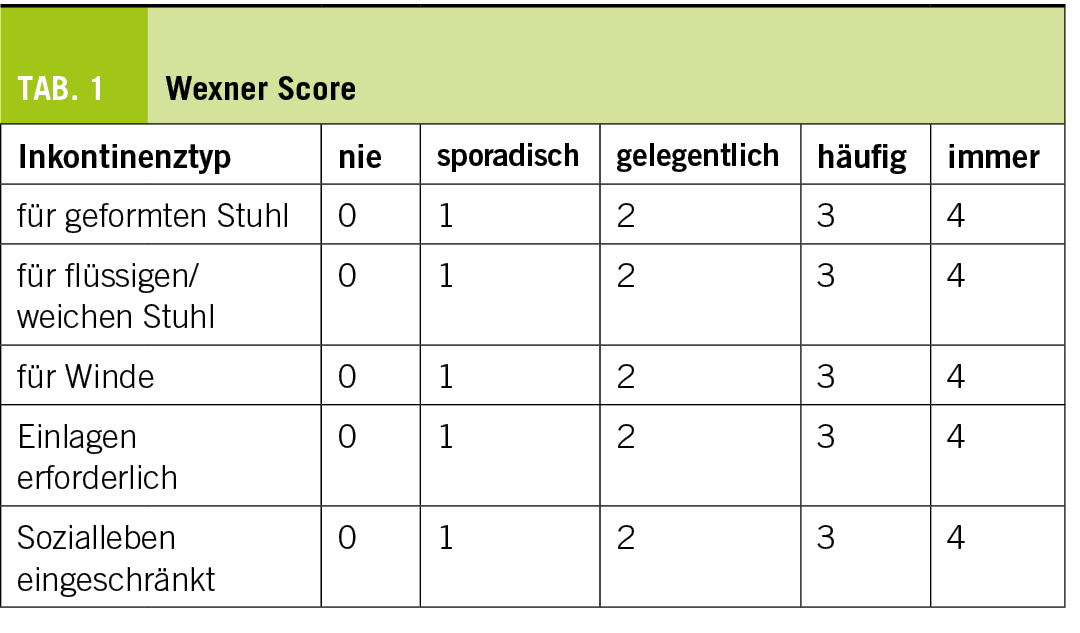 Es gibt mehrere Möglichkeiten, die Stuhlhaltefunktion zu bestimmen. Am weitesten verbreitet ist der sogenannte «Wexner Score». Dieser ermöglicht es, über ein einfaches Punktesystem den Schweregrad einer Inkontinenz abschätzen zu können.