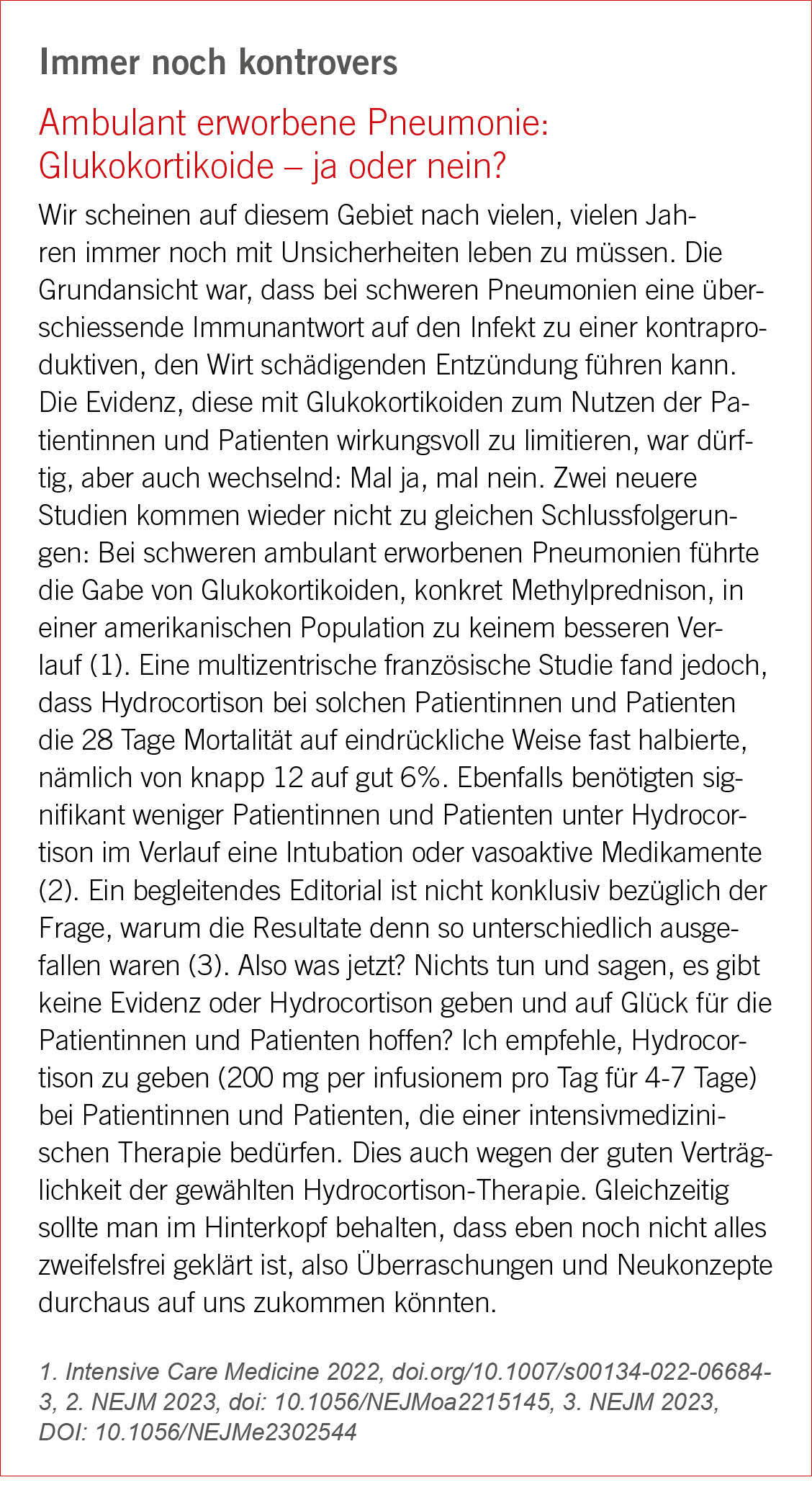Long Covid ist eine syndromale Langzeitfolge von Covid-19-Erkrankungen. Die Krankheit ist schwierig zu diagnostizieren, bzw. abzugrenzen von Langzeitfolgen einer schweren Akuterkrankung per se oder einem Burnout-Syndrom und anderen mehr. In der grössten, prospektiven Kohorte erwachsener Patientinnen und Patienten («RECOVER» Kohorte mit aktuell fast 10’000 Teilnehmerinnen und Teilnehmern) wird versucht, Symptome zu gruppieren, damit die Diagnose von «Long-Covid» besser reproduzierbar ist. Dies ist wichtig für die zukünftige Evaluation der Wirksamkeit von Behandlungsversuchen dieses teilweise für die Betroffenen und deren Umfeld sehr belastenden Syndroms. Mittels eines, vorerst noch der klinischen Forschung vorbehaltenen, «Scores» konnte die Krankheit viel besser definiert werden. Die häufigsten Einzelsymptome des Syndroms (6 Monate nach Beginn der akuten Erkrankung) waren die folgenden: Krankheitsgefühl (sog. «Malaise») nach körperlicher Anstrengung (ca. 90%), Müdigkeit und Abgeschlagenheit (sog. «Fatigue», ca. 85%), nebliges Gefühl im Kopf (ca. 65%), Palpitationen, Schwindelgefühle und gastrointestinale Symptome (alle je 60%). Long-Covid-Erkrankungen mit Vorgängervarianten von Omikron waren oder sind in der Regel länger und schwerer ausgeprägt. Die Arbeit fand weiter, dass unter den Patientinnen und Patienten, die ab dem 1. Dezember 2021 innert maximal 30 Tagen nach einem akuten Covid-19-Infekt in die Kohorte aufgenommen wurden, Long-Covid in 10% aller Fälle auftrat. Diese Häufigkeit, die Dauer der Erkrankung und der Schweregrad der Symptome machen Long-Covid zu einer grossen medizinischen Herausforderung für Prävention, Therapie und Rehabilitation!