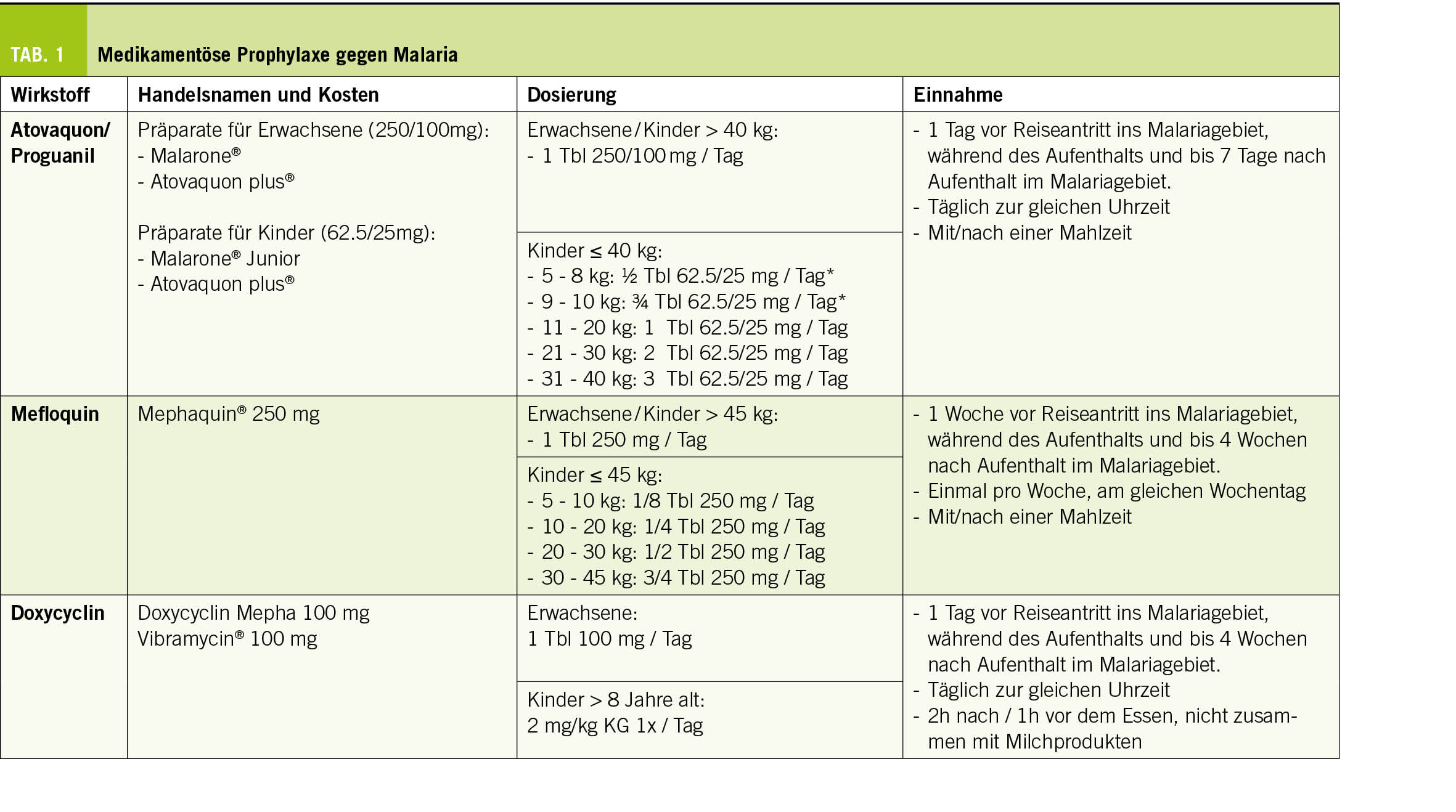 1. Malaria-Prophylaxe