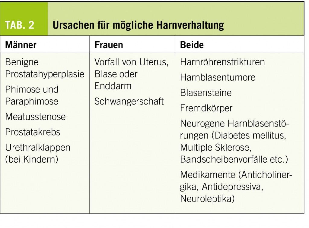 In primary care, the acute urinary retention is probably one of the most common reasons that leads to the insertion of a permanent catheter. The causes, which can lead to an acute urinary retention, are manifold. The most important are shown in Table 2 (adapted according to (5)):