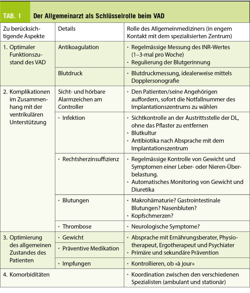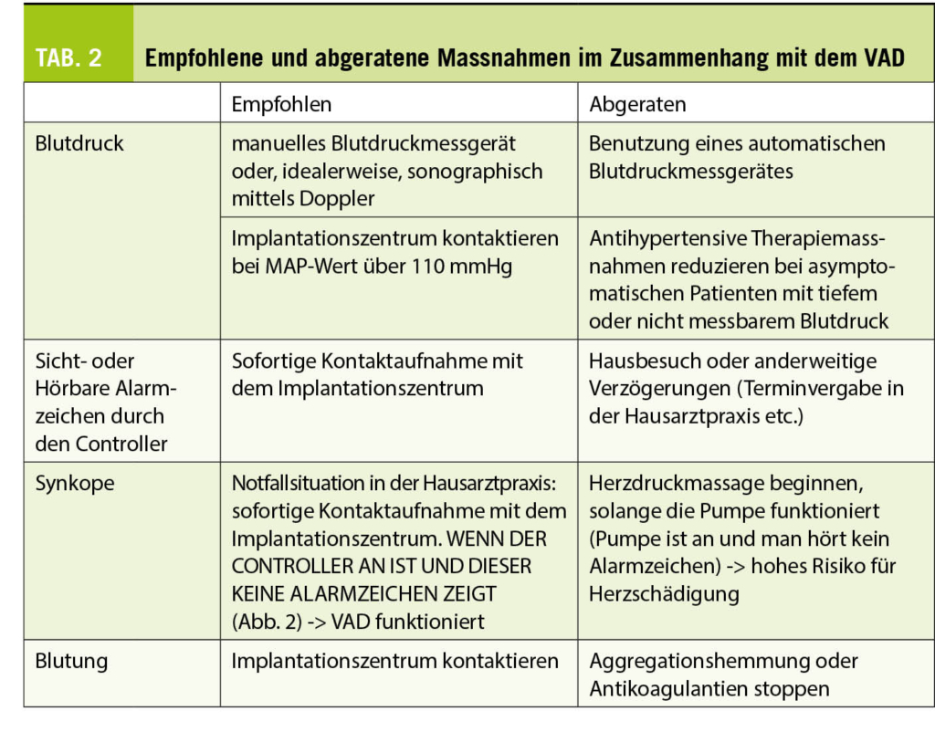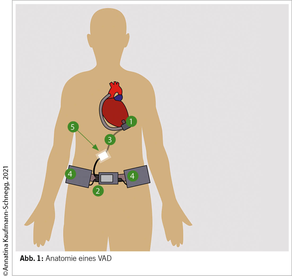 Die Behandlung von Patienten mit Herzinsuffizienz hat in den letzten Jahren eine enorme Entwicklung durchlaufen. Die Zahl der Patienten mit einem ventrikulären Herzunterstützungssystem (kurz VAD «ventricular assist device»), d.h. einem Pumpsystem zur Unterstützung einer insuffizienten Herztätigkeit, wächst. Die meisten dieser Patienten führen zu Hause ein (fast) normales Leben. Sie können (leichten) Sport treiben (1), manche können sogar wieder arbeiten (2). Sowohl für die Nachsorge ihrer Herzinsuffizienz als auch für nicht-kardiale Probleme sollen diese Patienten von ihrem Hausarzt mitbetreut werden (3).