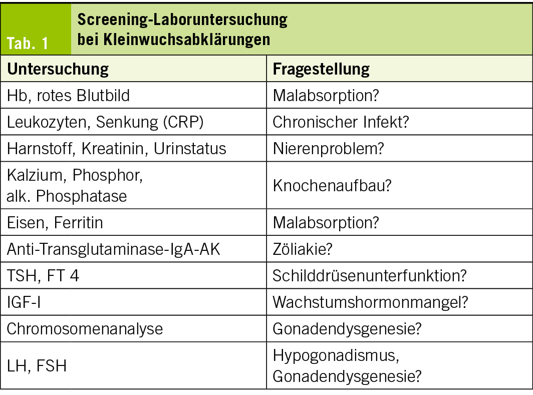 Tabelle 1 zeigt, welche Blutuntersuchungen bei einem zu kleinen Kind durchgeführt werden sollten.