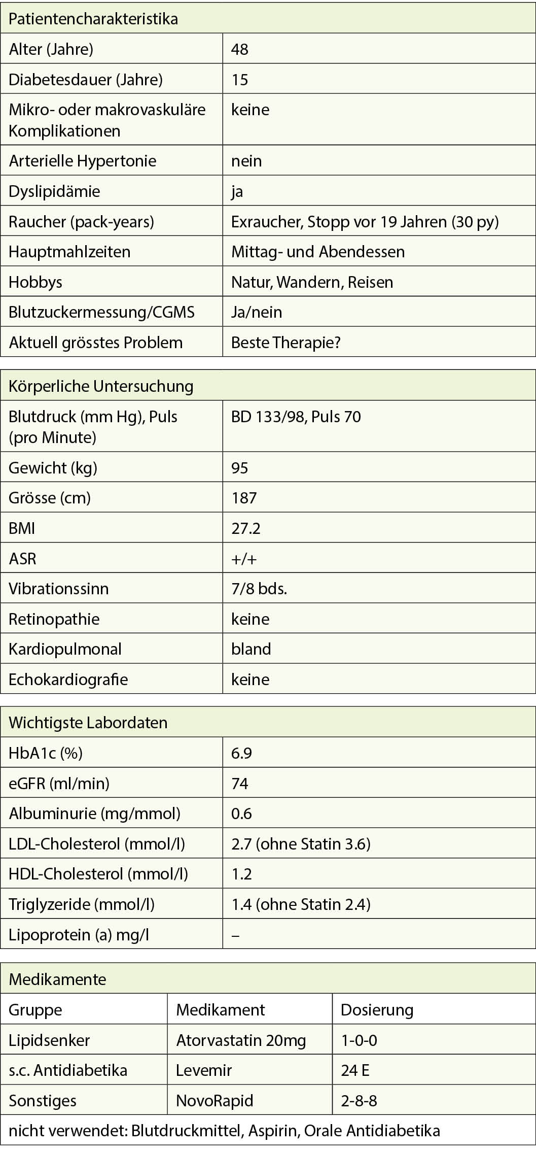 Vereinfachung der Insulintherapie durch Ryzodeg 20 E zu den beiden Hauptmahlzeiten als Ersatz für Basis-Bolus-Insulinschema (2 statt 4 Injektionen).