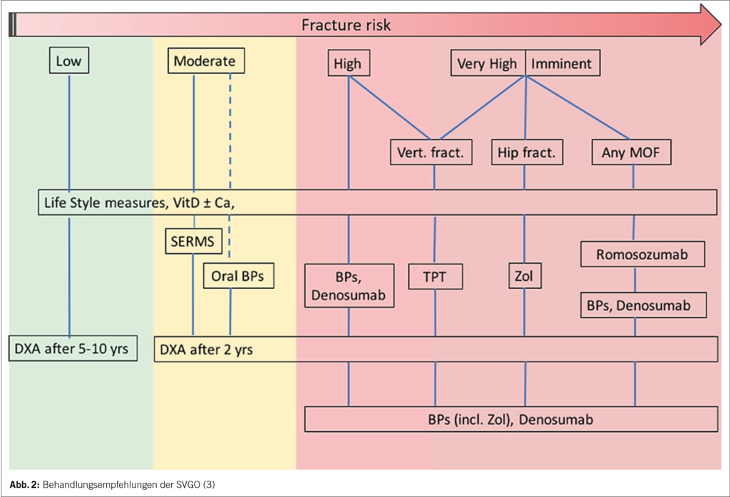 3. Ferrari S, Lippuner K, Lamy O, Meier C. 2020 recommendations for osteoporosis treatment according to fracture risk from the Swiss Association against Osteoporosis (SVGO). Swiss Med Wkly. 2020 Sep 29;150:w20352.