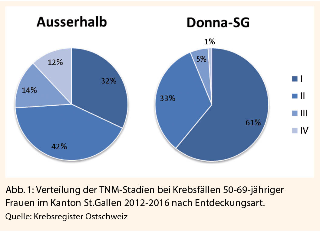 Die vorliegende Auswertung ergab, dass ein organisiertes Brustkrebsscreening mittels zweijährlichen Mammographien ab dem Alter 50 bis 69 Jahren in erwarteter Weise dazu führt, dass Tumore in einem früheren und somit auch besser kurablen Stadium diagnostiziert werden.