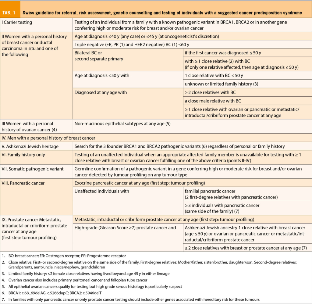 5. Stoll, S. et al. Update Swiss guideline for counselling and testing for predisposition to breast, ovarian, pancreatic and prostate cancer. Swiss Med Wkly 151, w30038 (2021).