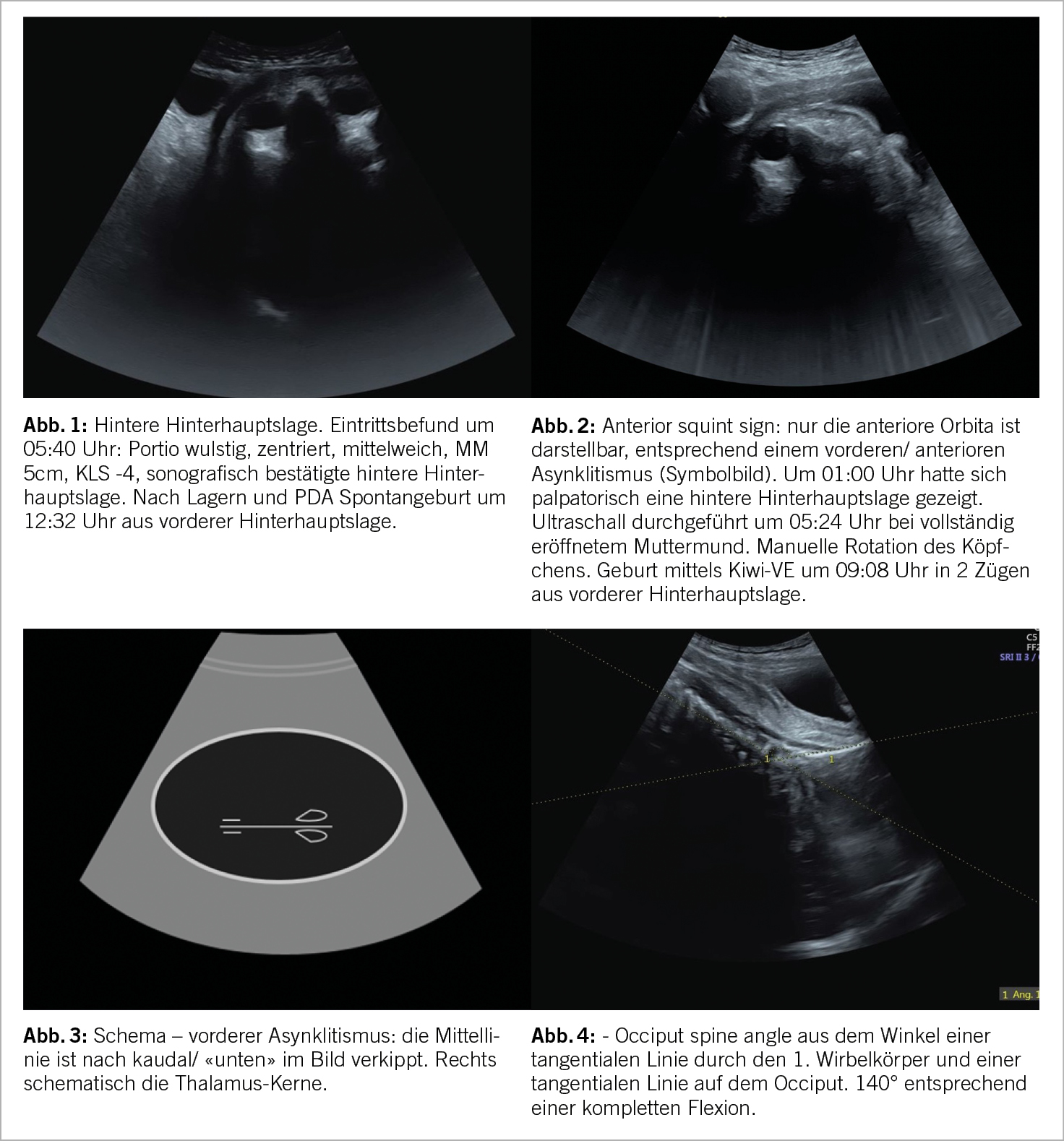 Entsprechend hierzu auch die Feststellung der ISUOG in ihrer Guideline zum intrapartalen Ultraschall: «We do not imply or suggest that ultrasound in labor is a necessary standard of care» (23) – Ultraschall ist kein notwendiger Standard of care, jedoch in vielerlei Hinsicht hilfreich. Er sollte als eine wichtige Zusatzinformation im Kontext der vaginalen Untersuchung und der klinischen Gesamtsituation gesehen werden, jedoch nicht als alleinige Entscheidungsgrundlage. Dabei sollte im Idealfall eine Kombination aus mehreren Messgrössen zurate gezogen werden. Dies deckt sich auch mit Empfehlungen von ISUOG (23), der World Association of Perinatal Medicine (10) und der AWMF (24). Zur richtigen Anwendung braucht es Übung. Es lohnt sich deshalb, die intrapartale Ultraschalluntersuchung routinemässig durchzuführen. Nur so verfügt man im Ernstfall über ausreichend Expertise und kann den Befund entsprechend interpretieren. Am Geburtszentrum Luzern wird der intrapartale transperineale Ultraschall mit Bestimmung des AoP, Head direction und HPD seit 2016 routinemässig durchgeführt. Wir haben dazu auch eine SOP verfasst, die unter www.obsgyn-wiki.ch frei zugänglich ist. Unsere Erfahrungen sind durchwegs positiv.