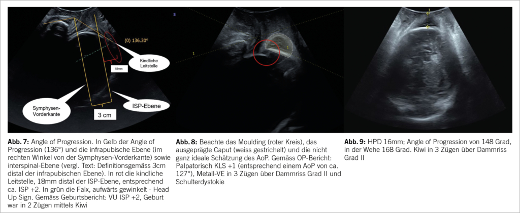 In den letzten 20 Jahren erschienen zahlreiche Arbeiten zum Einsatz von Ultraschall in der Austreibungsperiode, mit dem Ziel, die Wahrscheinlichkeit einer vaginalen bzw. Vaginal-operativen Entbindung abzuschätzen. Die Messgrössen, die sich dabei in letzter Zeit etabliert haben, sind der AoP (Angle of Progression), «head direction» und HPD (Head Perineal Distance).