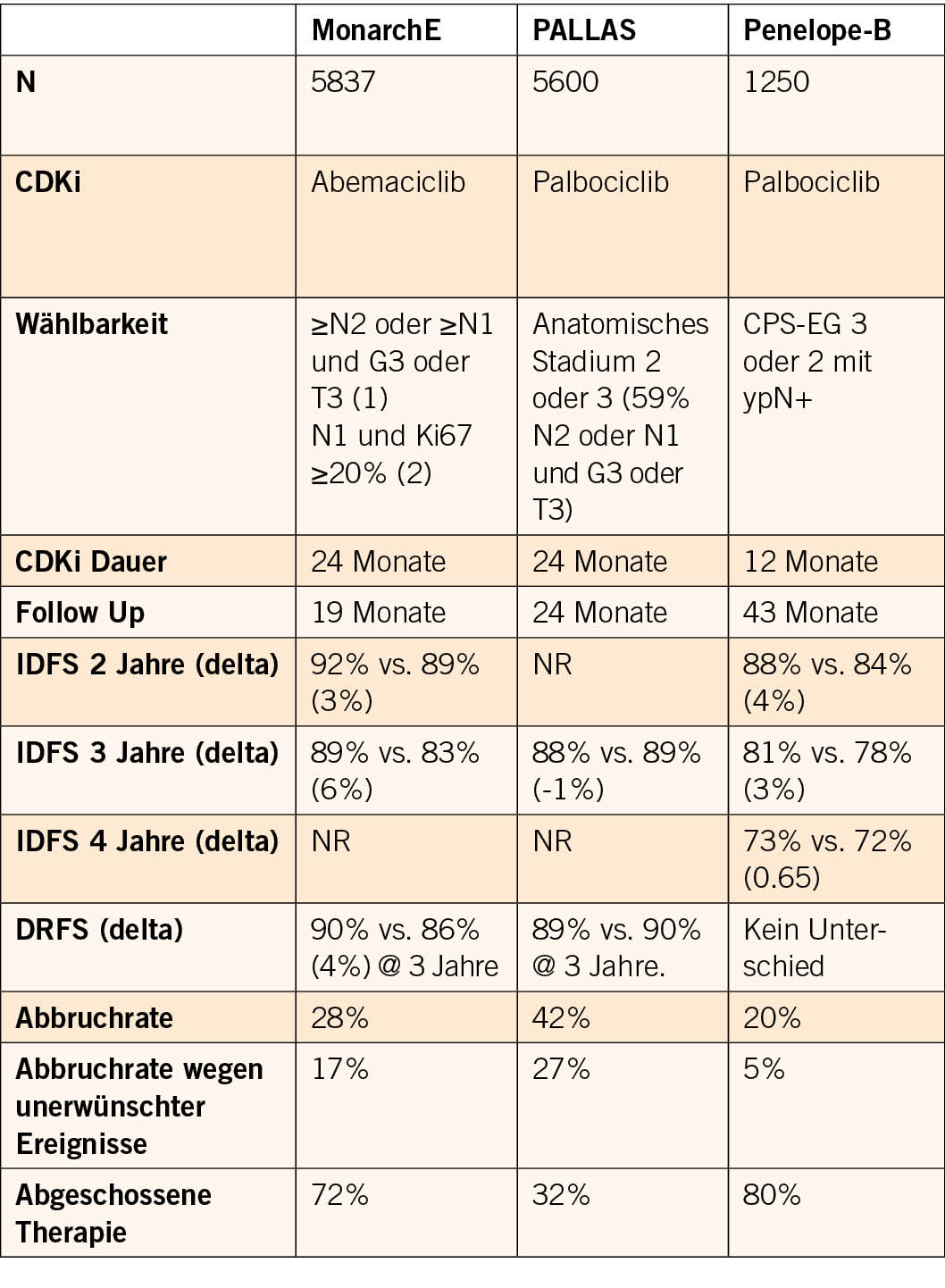 Vergleich verschiedener Studien mit CDK4/6 Inhibitoren adjuvant