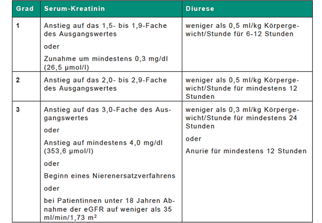 Die Definition der KDIGO Kidney Disease Improving Global Outcomes lautet: >3 Monate Funktionseinschränkung, histologische/strukturelle Veränderungen, Proteinurie/Hämaturie