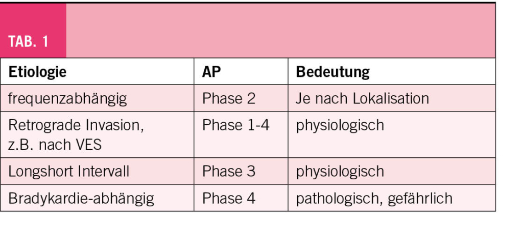 Abschliessend präsentierte der Referent die Blockierung der Reizleitung im His-Purkiniesystem (Tab. 1) und ihre Bedeutung.