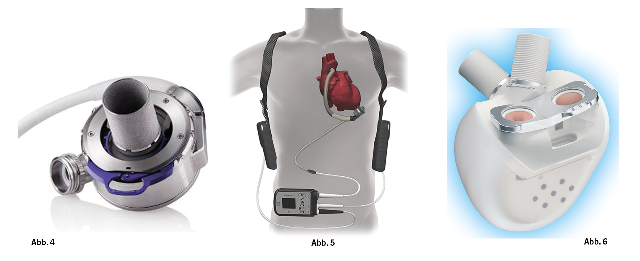 Sollte eine reine Unterstützung des linken Herzens nicht ausreichen, kann neben temporären rechtsventrikulären Unterstützungspumpen auch ein kompletter Herzersatz (Total Artificial Heart) in Erwägung gezogen werden. Für diese Therapieform kann nun ein neues und zuverlässiges Kunstherz (Aeson® von Carmat, Abb. 6)) als Überbrückung bis zu einer Transplantation verwendet werden.
