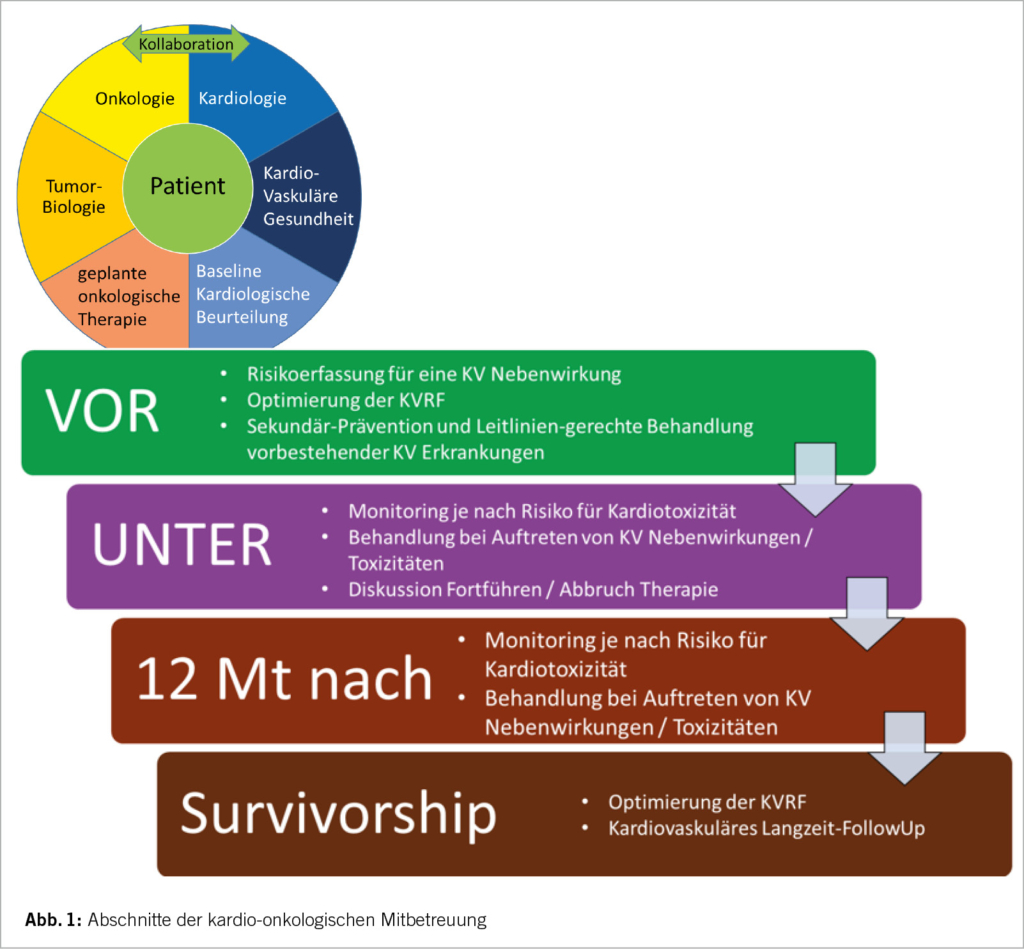 Allerdings birgt das Baseline-Risiko-Assessment mehrere Hürden. Das vorgeschlagene Risiko-Assessment ist nie für diesen Zweck vollumfänglich validiert worden. Die tatsächliche Leistung und klinische Anwendbarkeit im Alltag sind jedoch zumindest für einige Patienten-Subgruppen gezeigt worden, so z.B. für Patienten mit geplanter Anthrazyklin-basierter Therapie (7) oder mit chronisch myeloischer Leukämie (CML) vor Tyrosin-Kinase-Inhibitor Therapie (8). Auch die Implementierung des Baseline Risk-Assessment in den Praxisalltag scheint erschwert. Denn es stellt sich in erster Linie die Frage, wer eigentlich für diese Risiko-Bewertung zuständig ist. Der kardiologische Fachkollege eher nicht; diese(r) wird in der Regel erst beigezogen, wenn bei einem Patienten bereits ein erhöhtes Risiko identifiziert worden ist. Im Gegenzug hat das onkologische Behandlungsteam kaum detaillierte Kenntnisse der Kardio-Onkologischen Guidelines der ESC und auch der Hausarzt rückt in der Phase einer neu diagnostizierten Tumorerkrankung zumindest passager in den Hintergrund. Ein weiteres Problem stellt der Zeitfaktor dar. Auch mit der besten Triage im kardiologischen Praxisalltag kommt es zu Wartezeiten und es ist kaum sinnvoll, auf die komplettierte Risikostratifizierung zu warten, bevor grünes Licht für den Therapiestart gegeben wird.