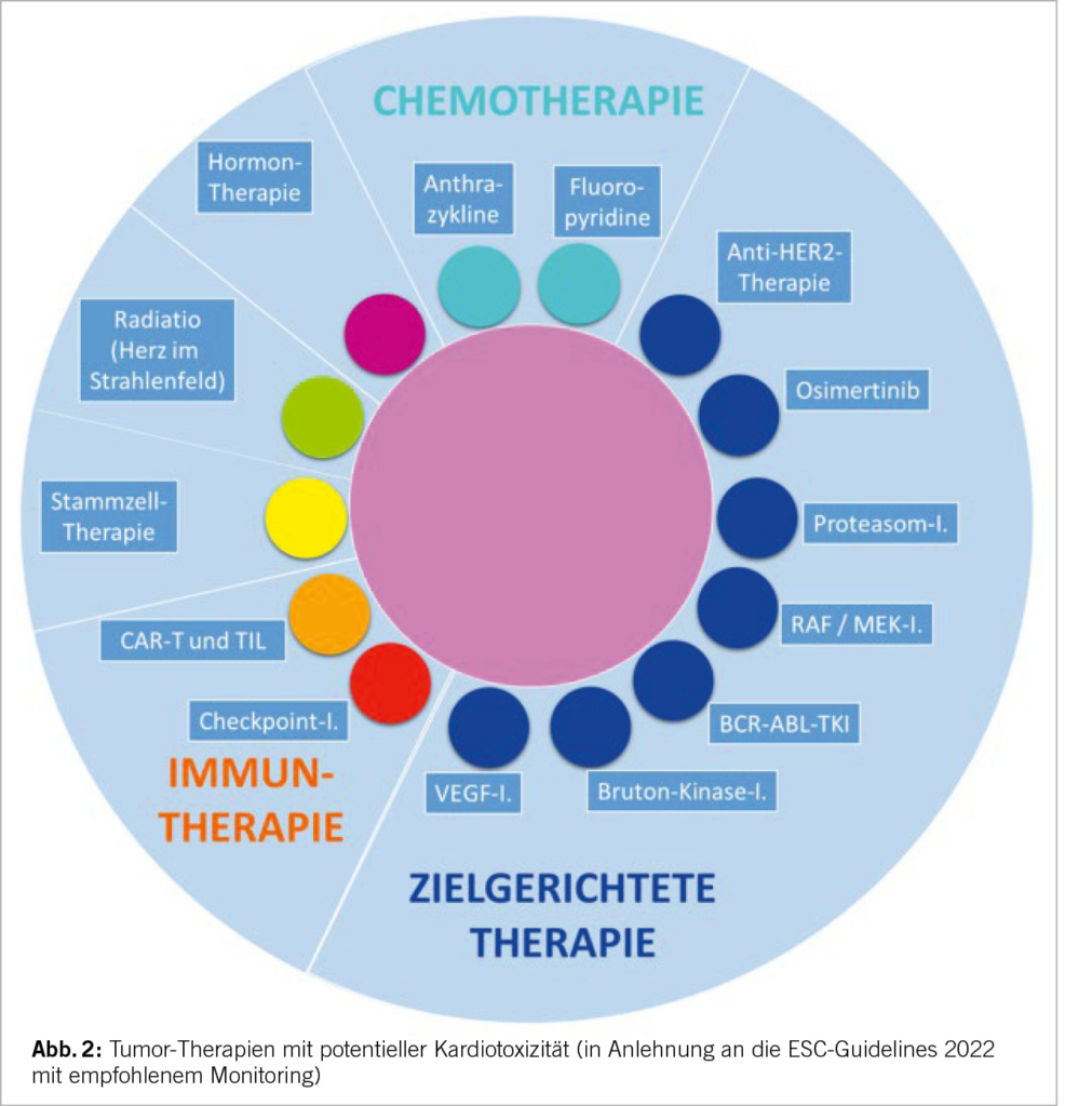 In der Vergangenheit bezog sich der Begriff «Kardiotoxizität» (Cancer Therapy-Related Cardiovascular Toxicity, CTR-CVT) vorwiegend auf eine myokardiale Dysfunktion und Herzinsuffizienz. In der ESC-Leitlinie wird – auf Grundlage der Definitionen der International Cardio-Oncology Society (IC-OS) (5) – betont, dass die CTR-CVT ein sehr breites Spektrum an kardiovaskulären Störungen umfasst, einschliesslich der koronaren Herzkrankheit, Herzklappenerkrankungen, Herzrhythmusstörungen, Perikarderkrankungen, autonomer Dysfunktion sowie systemischer und pulmonaler Hypertonie. Neu definiert, mit klaren Kriterien, wurde die myokardiale Dysfunktion basierend auf der Abnahme der linksventrikulären Ejektionsfraktion (LVEF) und dem globalen longitudinalen Strain (GLS) sowie des Anstiegs kardialer Biomarker. Diese universelle Definition der Kardiotoxizität sowie deren Schweregrades ist grundlegend, um im klinischen Alltag im gesamten Behandlungsteam von Krebspatienten eine gemeinsame Sprache zu sprechen. Schliesslich ist nicht selten die zentrale Frage bezüglich der onkologischen Therapie hiermit verknüpft: Abbrechen, unterbrechen oder weitermachen?