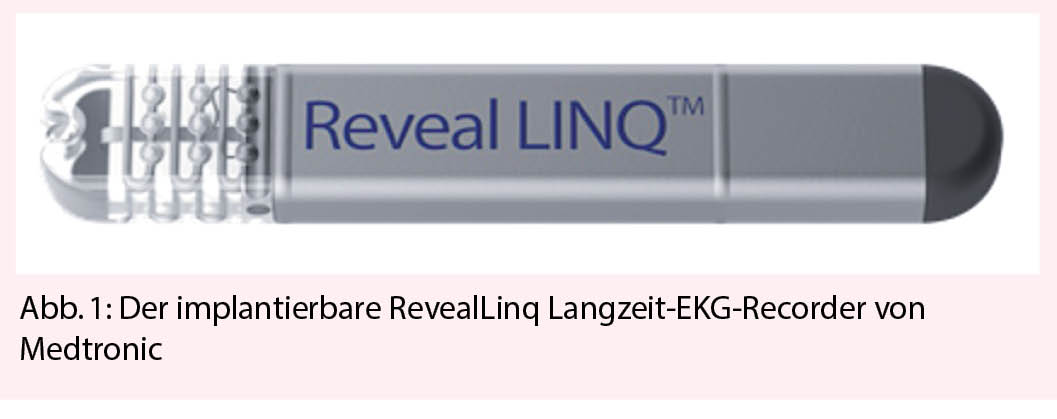Rhythmusstörungen sind häufige Erkrankungen, treten aber oft nur intermittierend auf. Das Risiko zumindest einmal im Leben zum Beispiel Vorhofflimmern zu entwickeln, liegt gemäss der Framingham-Studie bei ca. 25% (1). Die telemedizinische Auswertung eines Langzeit-EKG-Recorders ist sehr sinnvoll bei Patienten mit seltenen, dafür aber potenziell gefährlichen Rhythmusstörungen und kommt zum Einsatz, nachdem in externen Langzeit-EKGs wie 24h-Holter-EKG oder 7-Tage-Event-EKG keine Diagnose gestellt werden konnte. Bei dieser hochselektionierten Patientengruppe konnte mit einem Loop-Recorder in bis zu 88% der Fälle eine Korrelation zwischen EKG und Symptomen gefunden werden (2). Dementsprechend konnte, verglichen mit herkömmlichen Techniken, mit einem implantierbaren Loop-Recorder bei bisher nicht geklärten Synkopen auch viel schneller und zuverlässiger eine Diagnose gestellt werden (3). Die Recorder, zum Beispiel der RevealLinq von Medtronic (Abb. 1) oder der ConfirmRx von Abbott, können während zwei bis drei Jahren Rhythmusstörungen erkennen und diese telemedizinisch an eine Datenbank übertragen. So wird innert kürzester Zeit die Diagnose gestellt und eine Therapie begonnen, bzw. nach drei Jahren ohne registrierte Rhythmusstörung, diese praktisch sicher ausgeschlossen (Abb. 2).