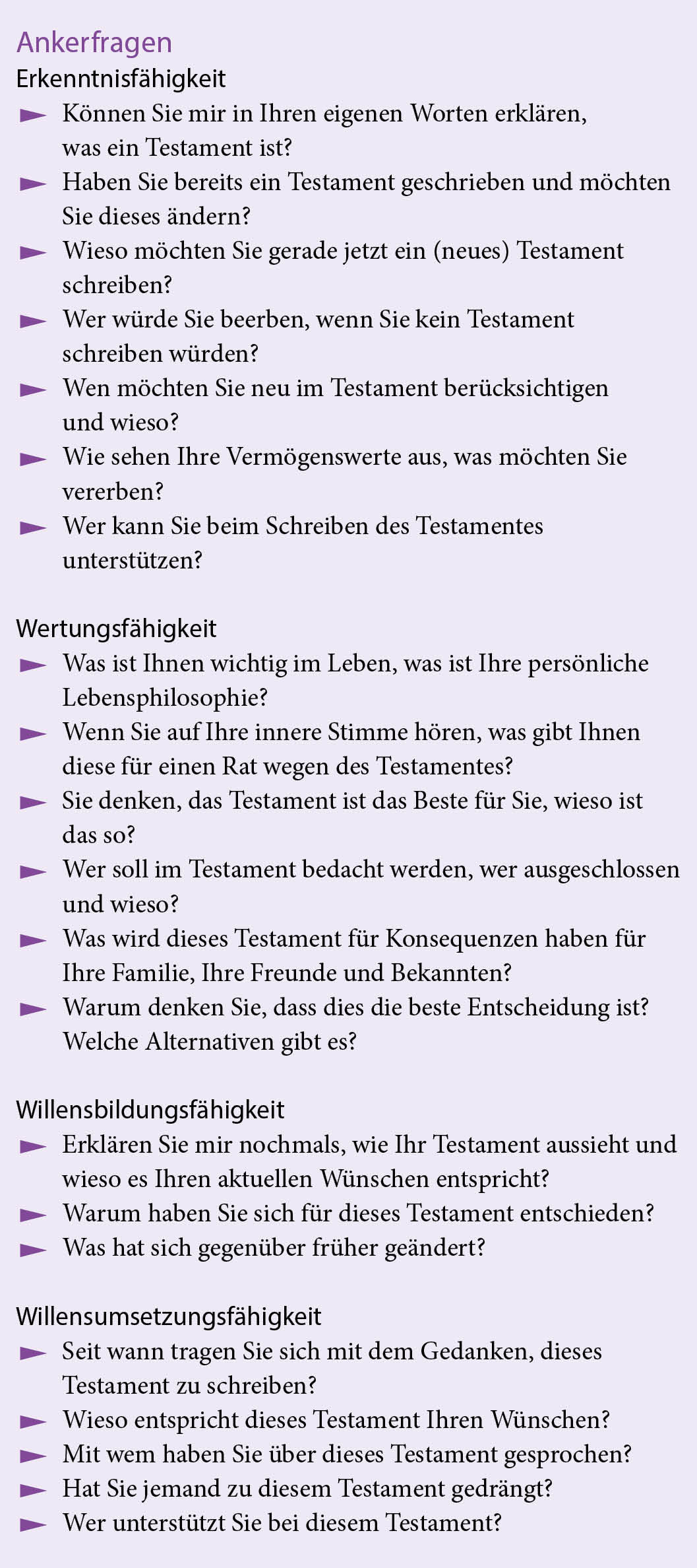 - Abklärung der Testierfähigkeit bei Menschen mit kognitiven Einschränkungen
