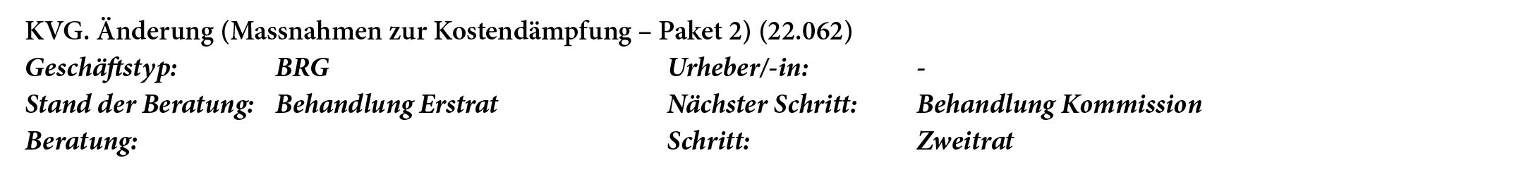 Aktueller Stand: Der Bundesrat will die Prämienbelastung für die Menschen in der Schweiz dämpfen. Nach einem ersten Massnahmenpaket hat er an seiner Sitzung vom 7. September 2022 das zweite Massnahmenpaket zur Kostendämpfung zuhanden des Parlaments verabschiedet. Die Massnahmen verbessern die medizinische Versorgung und bremsen das Kostenwachstum im Gesundheitswesen.