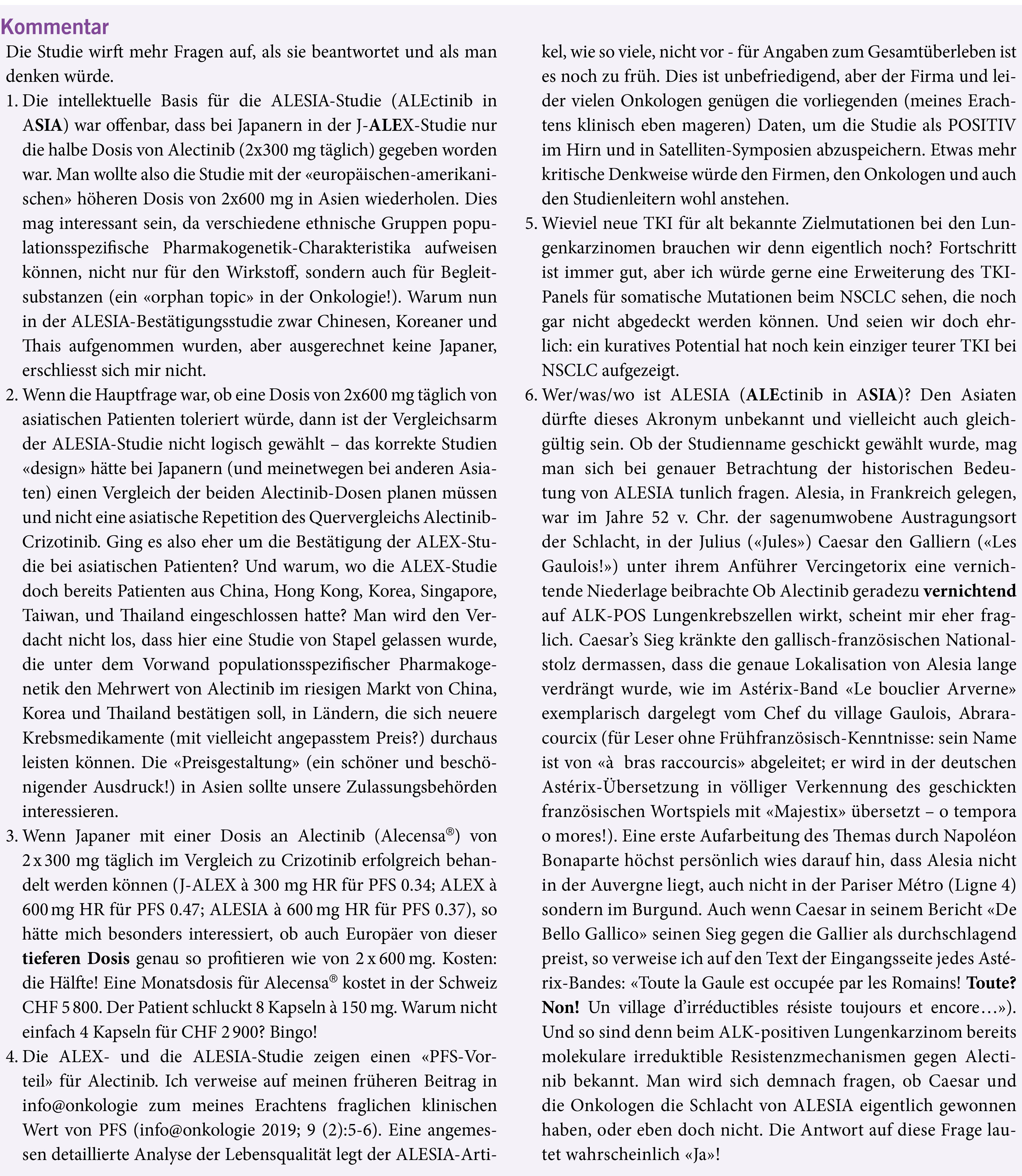 - ALESIA – Alectinib vs. Critozinib bei NSCLC