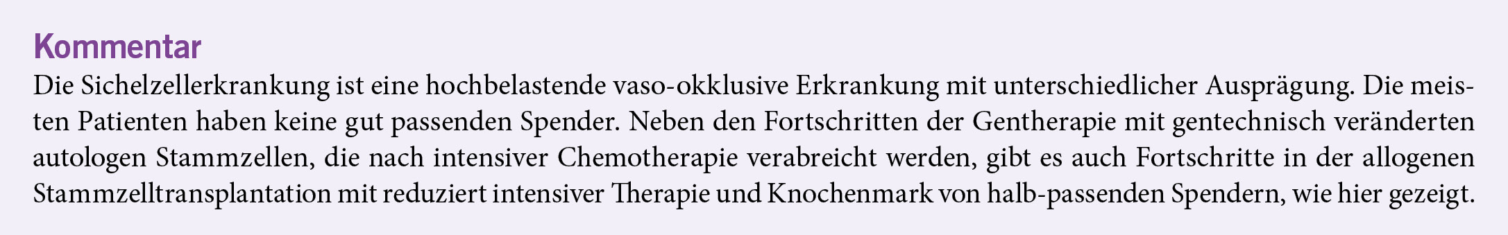 Die vorliegende Studie ist eine Phase-2-Studie zur Knochenmarkstransplantation mit halb-passenden Spendern, d. h. haploidenten Spendern, nach einer reduzierten intensiven Therapie mit Thiotepa und der Prophylaxe der Graft-versus-Host-Krankheit (GvHD) mit posttransplantärem Cyclophosphamid bei Patienten mit Sichelzellerkrankung. Die Hypothese lautet wie folgt: Ereignisfreies Überleben (EFS) von mindestens 80 %. In die vorliegende Studie wurden insgesamt 70 Patienten eingeschlossen, darunter 38 Erwachsene und 32 Kinder. Eine Transplantatabstoßung wurde in acht von 70 Fällen (11.4 %) beobachtet, wobei dies ausschließlich bei Patienten unter 18 Jahren der Fall war. Bei sämtlichen Patienten konnte eine autologe Rekonstitution beobachtet werden, was bedeutet, dass die Funktion des eigenen Knochenmarks wieder aufgenommen wurde. Nach einem Beobachtungszeitraum von zwei Jahren wurde ein Ereignisfreies Überleben (EFS) von 82.6 % und ein Gesamtüberleben von 94.1 % ermittelt. Hierbei zeigten sich keine Unterschiede zwischen adulten und pädiatrischen Patienten. Von den Patienten, bei denen die Transplantation erfolgreich verlaufen ist, waren 96.6 % (57 / 59) ein Jahr nach der Transplantation ohne Immunsuppression. Bei 10 % der Patienten trat eine schwere akute GvHD auf, bei weiteren 10 % eine chronische GvHD. Fünf Patienten verstarben an infektiösen Komplikationen.