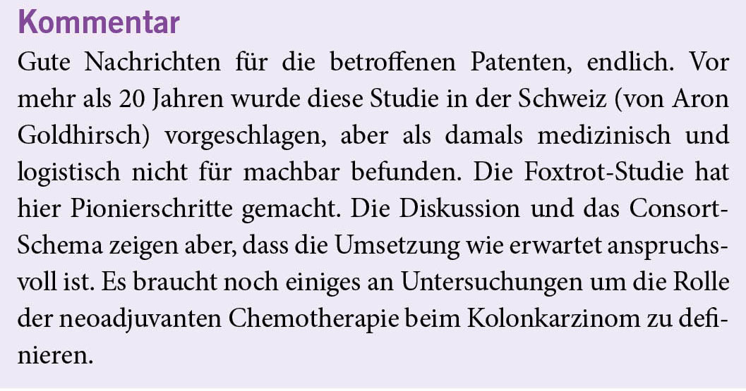 Quelle: Morton D et al. Preoperative Chemotherapy for Operable Colon Cancer: Mature Results of an International Randomized Controlled Trial . J Clin Oncol 2022. DOI: 10.1200/JCO.22.00046 Journal of Clinical Oncology – published online before print January 19, 2023