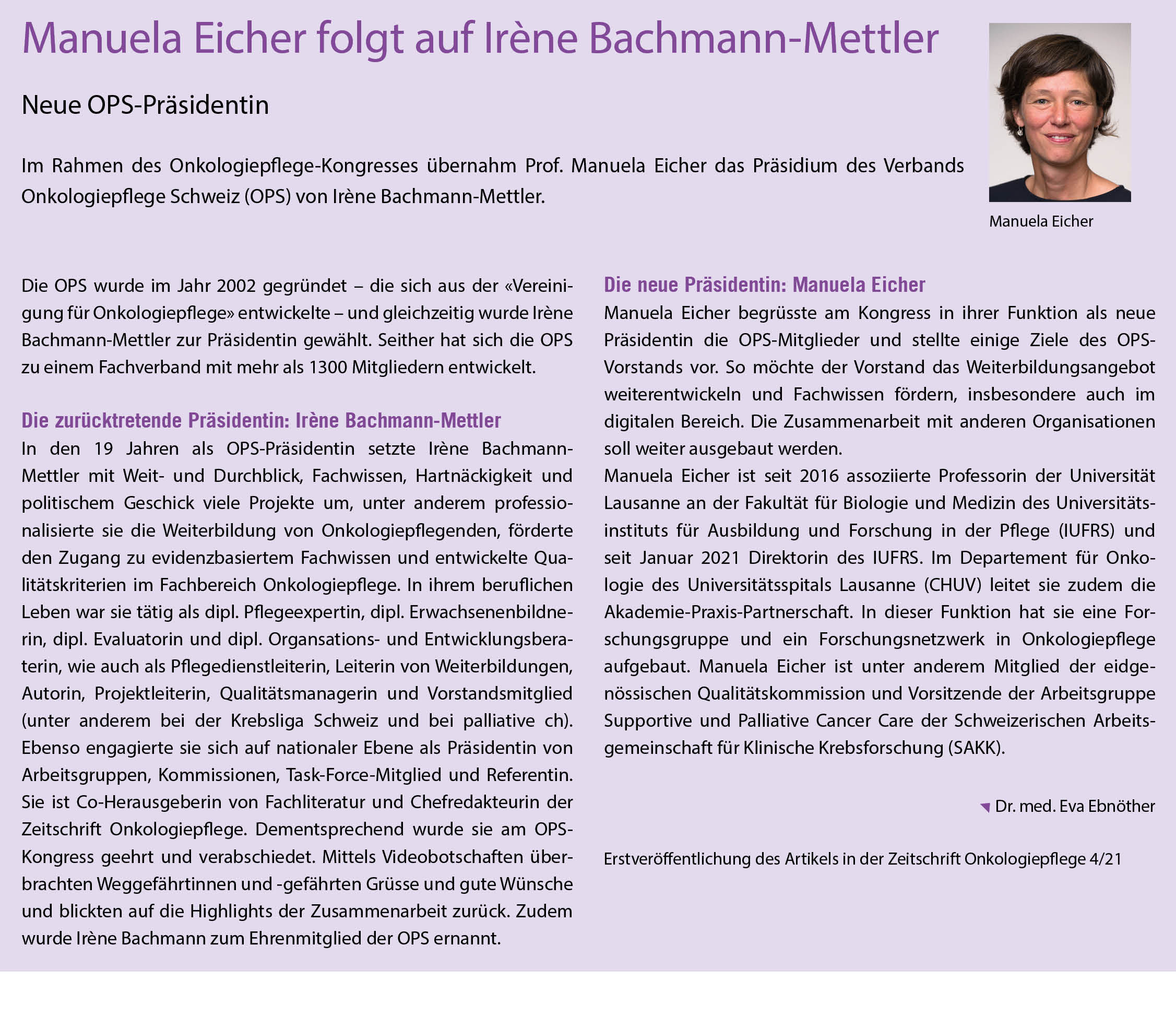 Ich habe den richtigen Zeitpunkt gewählt, um aufzuhören. Ich konnte mich schrittweise aus dem Berufsleben verabschieden. Die OPS-Zeitschrift werde ich vorläufig weiter als Redaktorin begleiten, und das auch sehr gern – so bleibe ich in Kontakt mit dem Fachwissen und meinen Weggefährtinnen.