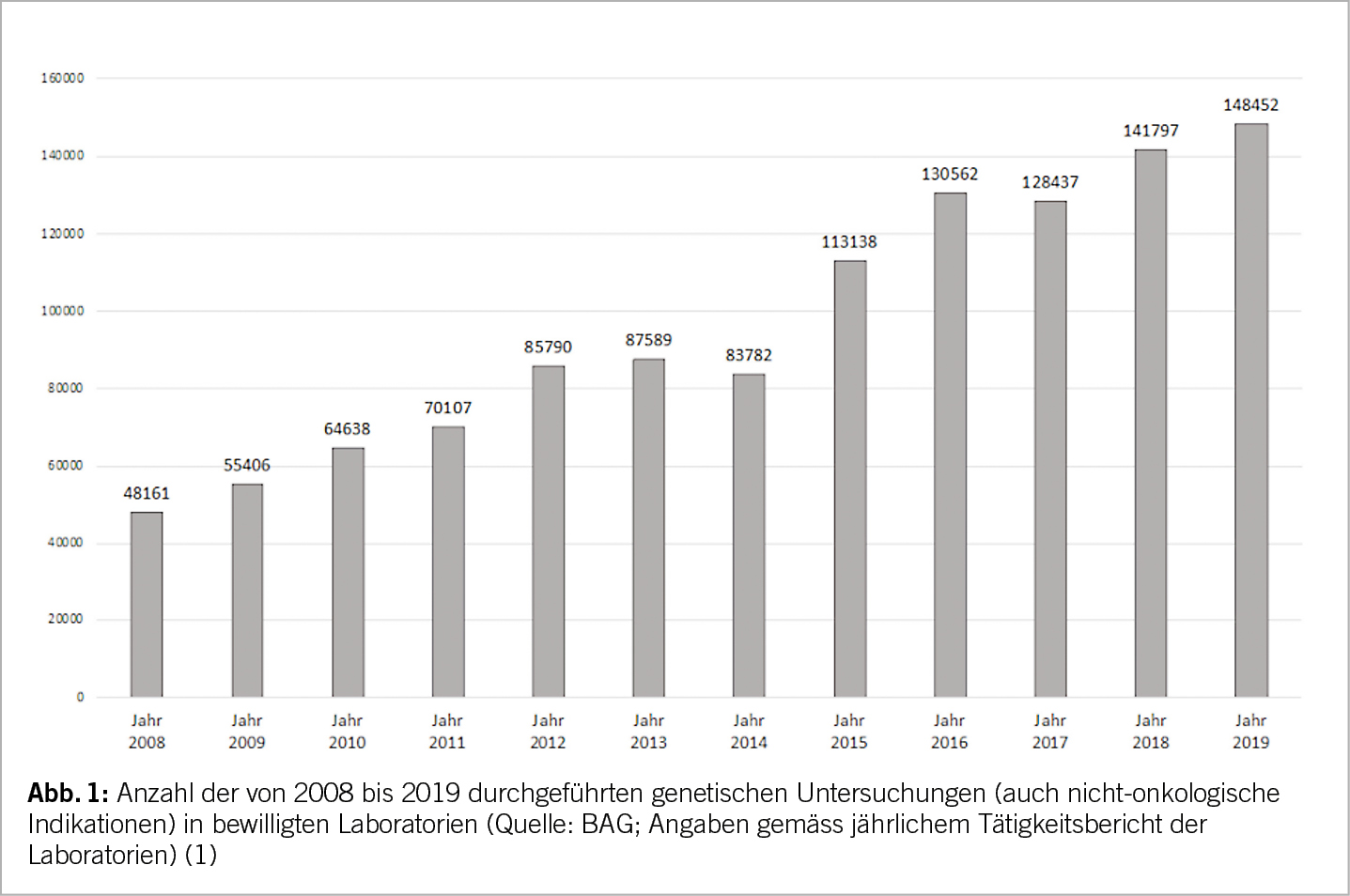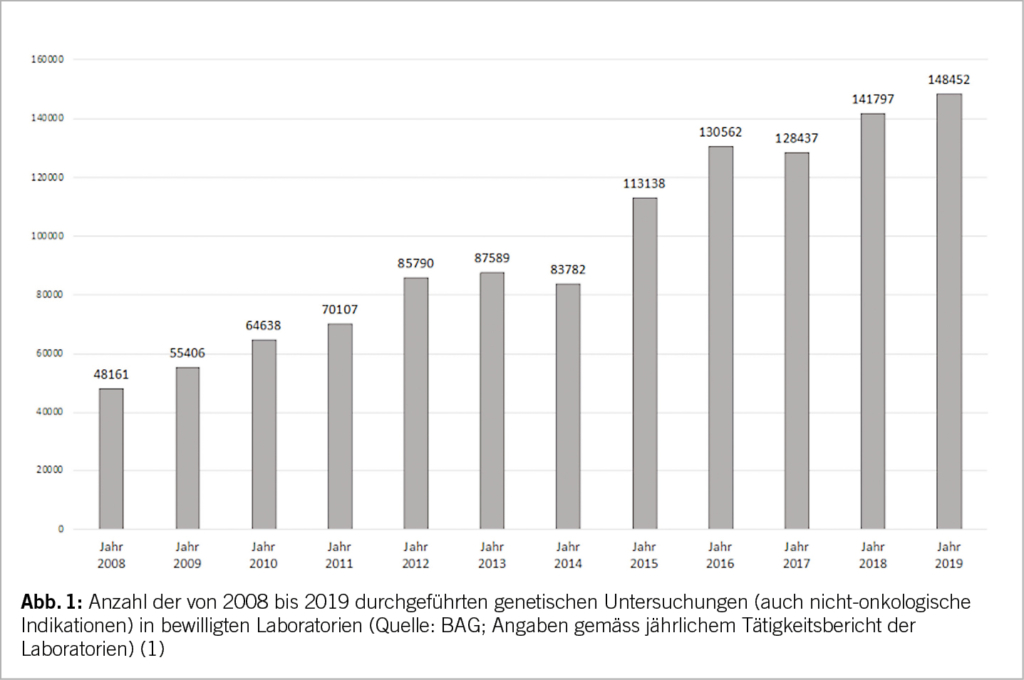 Die genetische Beratung und Testung bei Krebsleiden und -prädispositionen haben sich in den letzten Jahren etabliert in der onkologischen Praxis. Deren Umfang nimmt in allen Zentren zu (Abb. 1). Im Rahmen des «Netzwerks für die Testung auf eine genetische Krebsprädisposition und Risikoberatung» («Network for Cancer Predisposition Testing and Counseling» [CPTC]) der Schweizerischen Arbeitsgemeinschaft für klinische Krebsforschung (SAKK) wird einerseits ein nationaler fachlicher Austausch geschaffen, es werden aber auch regelmässige Fortbildungen angeboten anlässlich der Halbjahresversammlungen sowie interessierte ÄrztInnen kontinuierlich zu genetischen BeraterInnen ausgebildet für deren Tätigkeit in den jeweiligen Zentren. Aufgrund der Bedarfszunahme an genetischen Beratungen werden sogenannte Genetic Counsellors ausgebildet, dies in den USA, Kanada und Australien sowie zunehmend in Europa (z.B. UK, Frankreich, Norwegen, Schweden und Spanien). Neu gibt es auch Ausbildungslehrgänge dafür in Italien und Österreich. In der Schweiz gibt es bisher nur wenige, im Ausland ausgebildete Genetic Counsellors, dies vor allem in der Westschweiz (1). stehen. High-risk Patienten sollten, sofern verfügbar, im Rahmen von Phase 3 Studien behandelt werden.