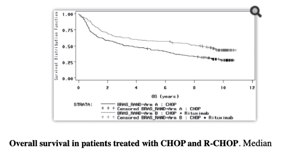 4. Coiffier B et al Long-term outcome of patients in the LNH-98.5 trial, the first randomized trial comparing rituximab-CHOP to standard CHOP chemotherapy in DLBCL patients: a study by the Groupe d’Etudes des Lymphomes de l’Adult. Blood. 2010; 116: 2040-5.