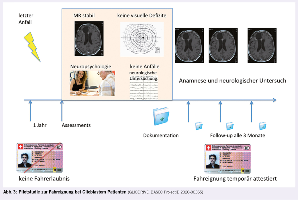 läuft zur Zeit eine Pilotstudie für Glioblastom-Patienten, welche am Universitätsspital Zürich und am Luzerner Kantonsspital offen ist (GLIODRIVE, BASEC ProjectID 2020-00365, Kontakt: silvia.hofer@usz.ch, Abb. 3).