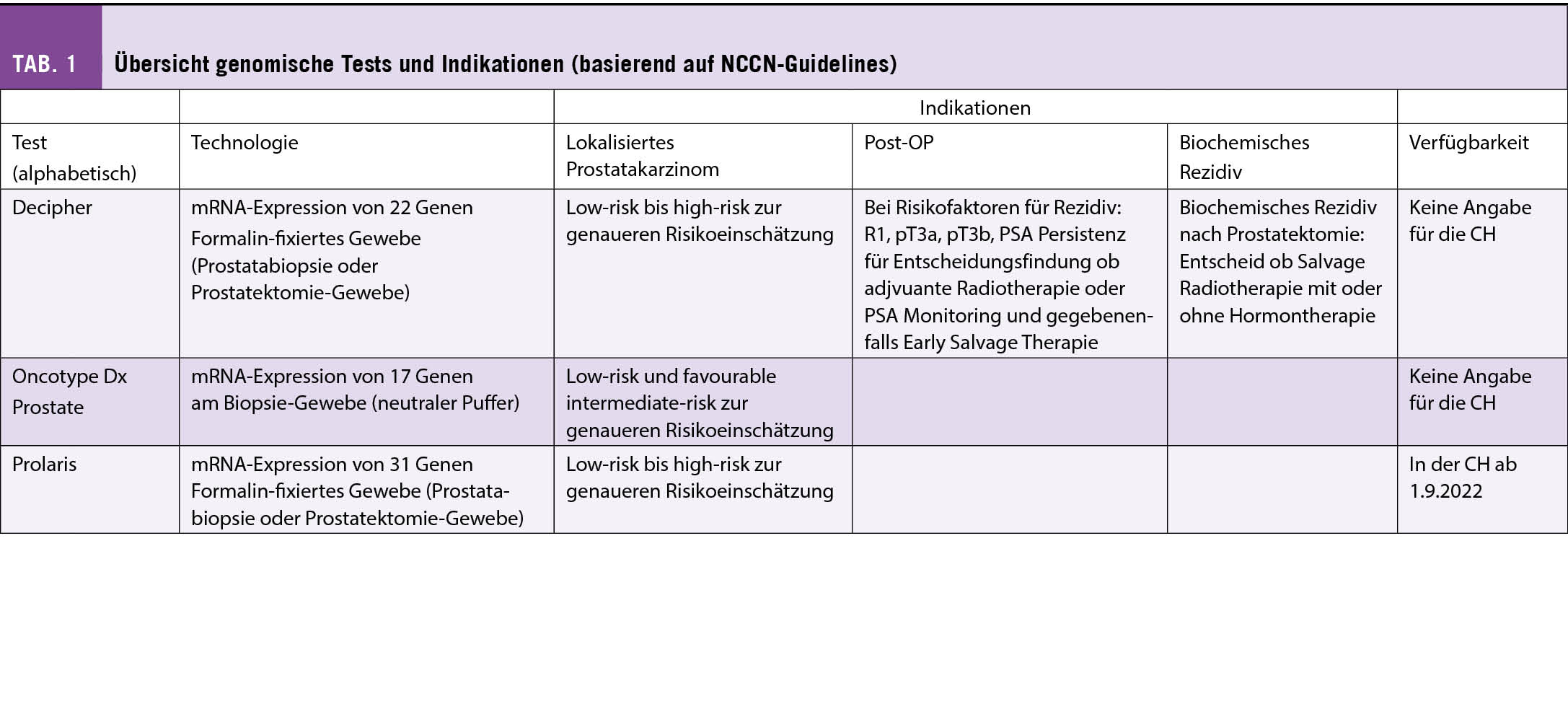 dieser Tests, aber im Einzelfall kann die genetische Information einen Zusatznutzen erbringen im Sinne einer besseren Risiko­einschätzung und personalisierten Therapieempfehlung, insbesondere beim lokalisierten Prostatakarzinom in den Kategorien «low risk» und «intermediate risk».